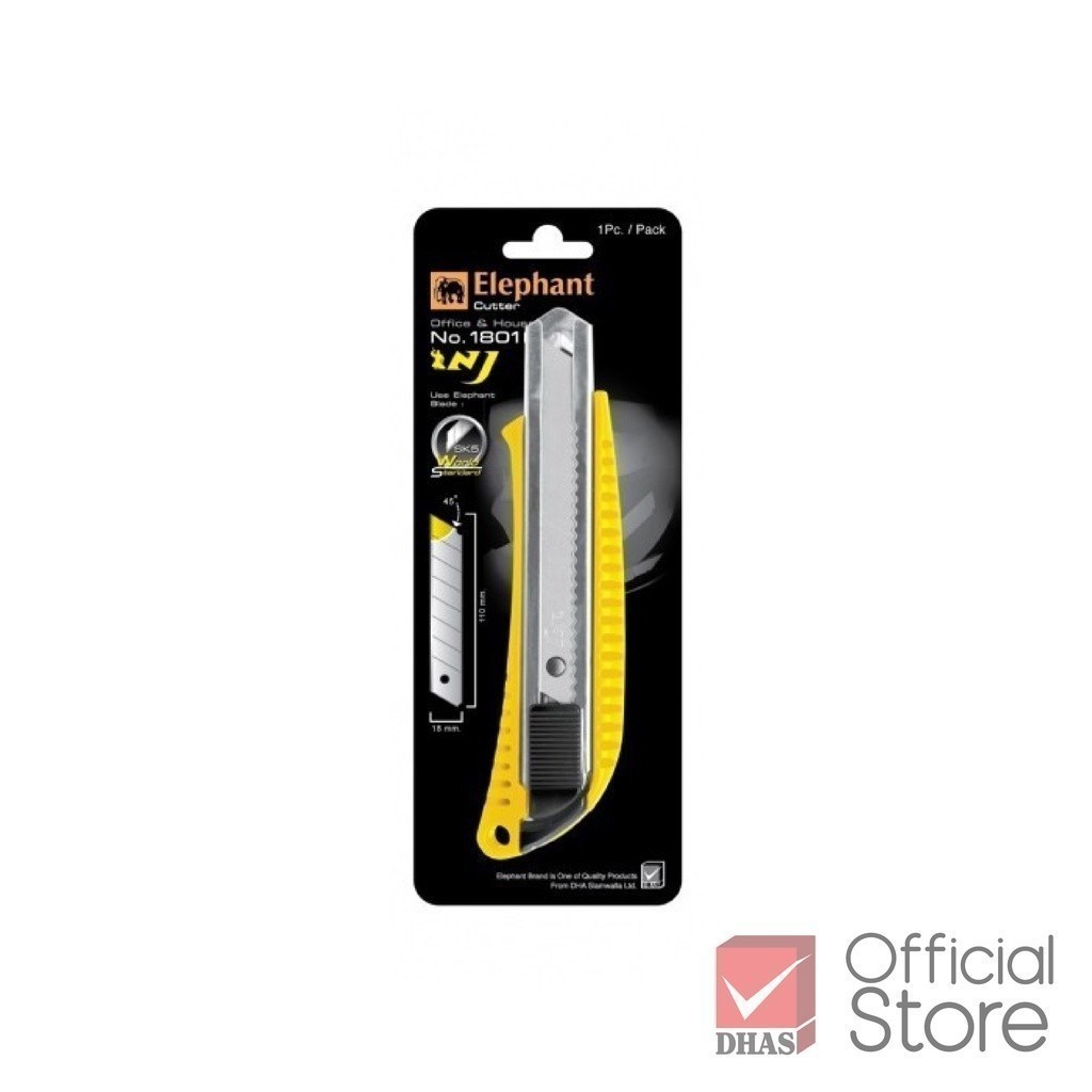Elephant คัตเตอร์ มีดคัตเตอร์ Economy รุ่น 1801 18 มม. 45° ใบมีด SK5 คละสี จำนวน 1 อัน