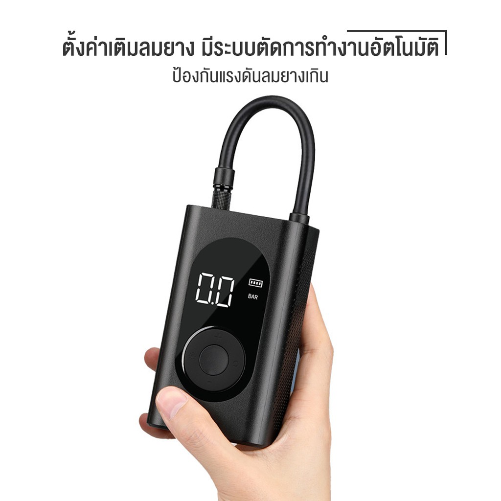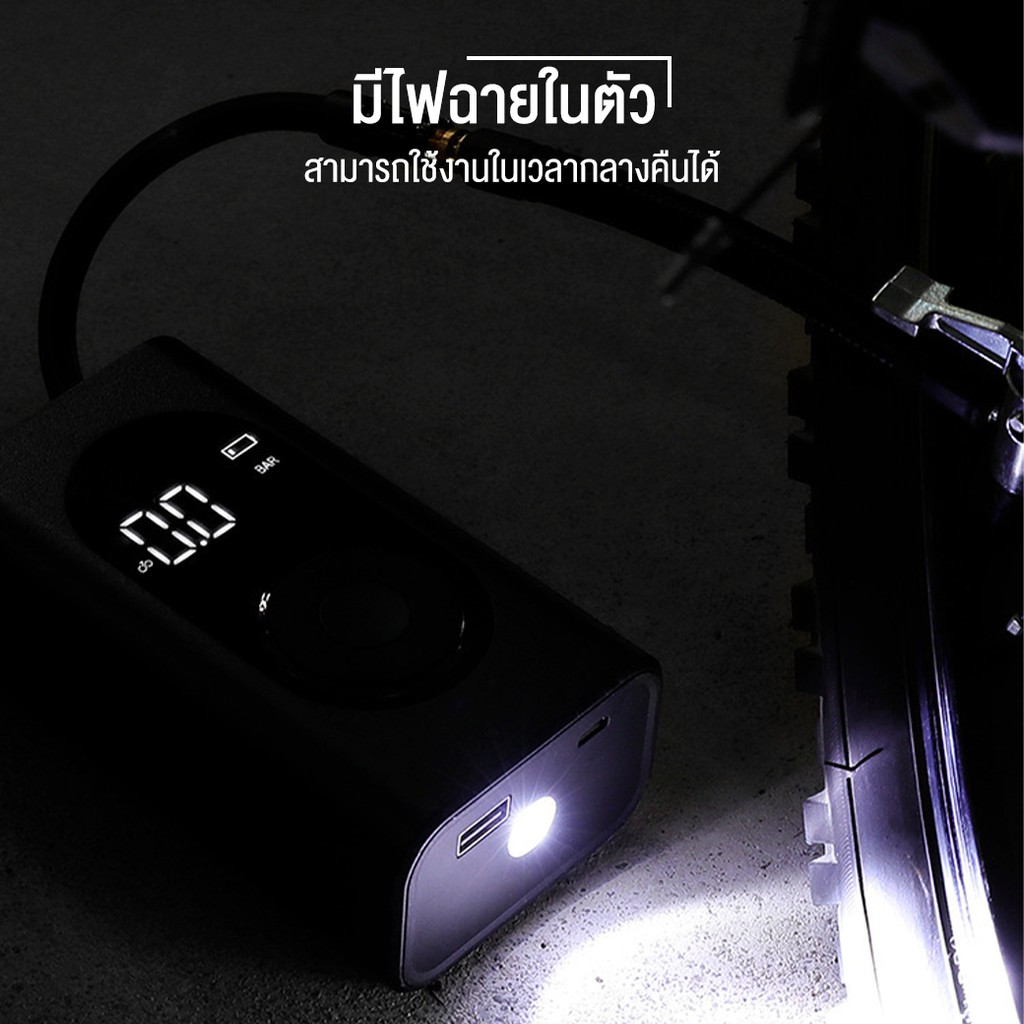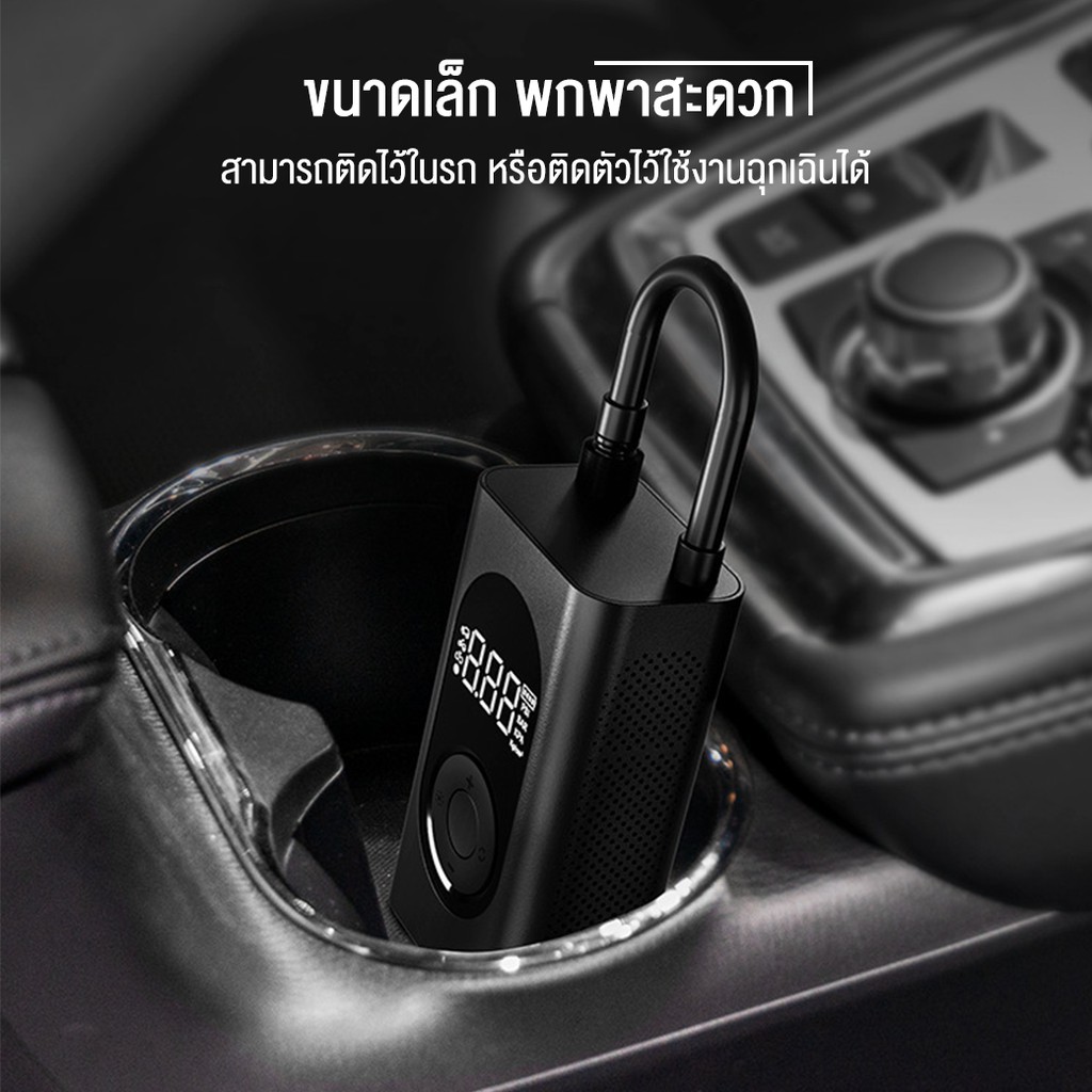 ที่เติมลมพกพา 150psi มีไฟฉุกเฉิน แบตเตอรี่สำรอง Portable Smart Digital Tire Pressure