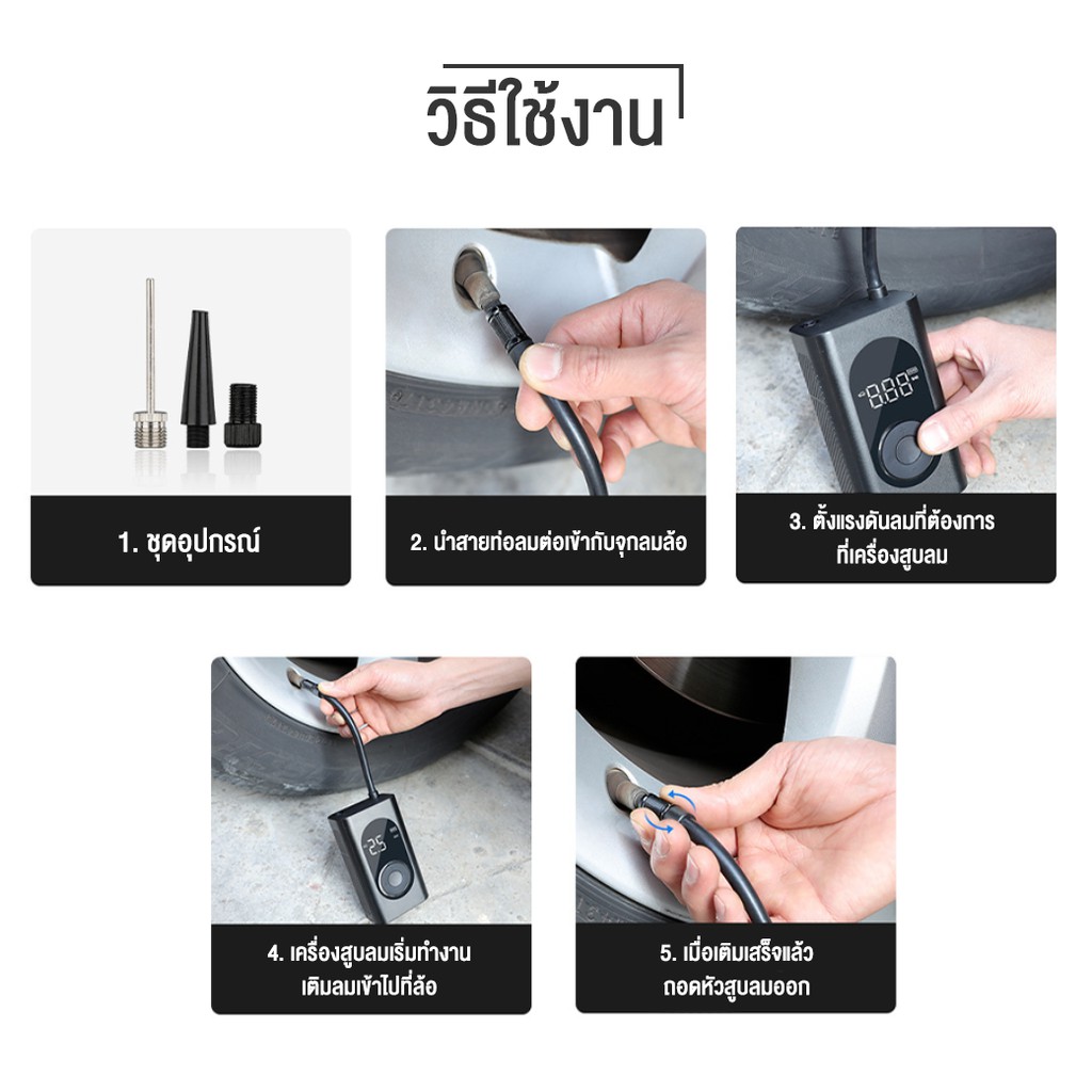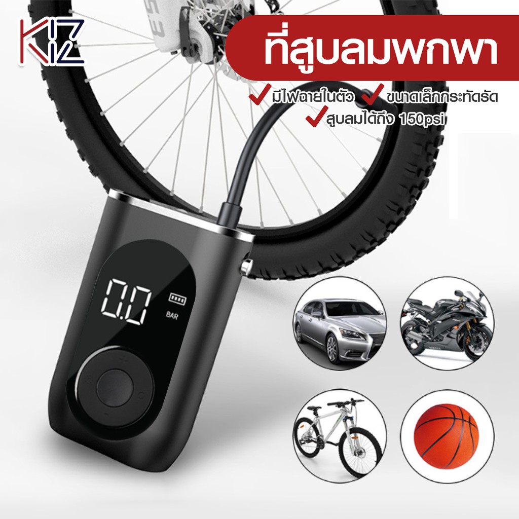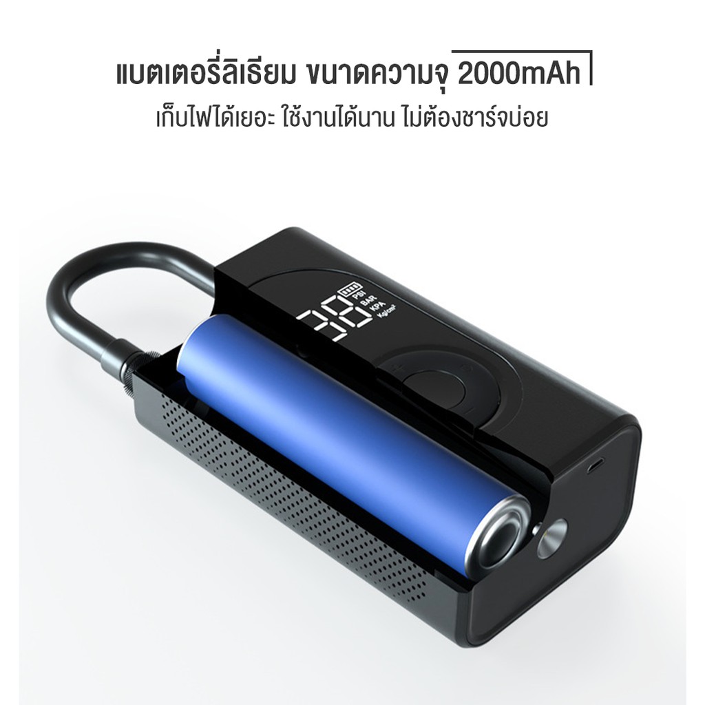 ที่เติมลมพกพา 150psi มีไฟฉุกเฉิน แบตเตอรี่สำรอง Portable Smart Digital Tire Pressure