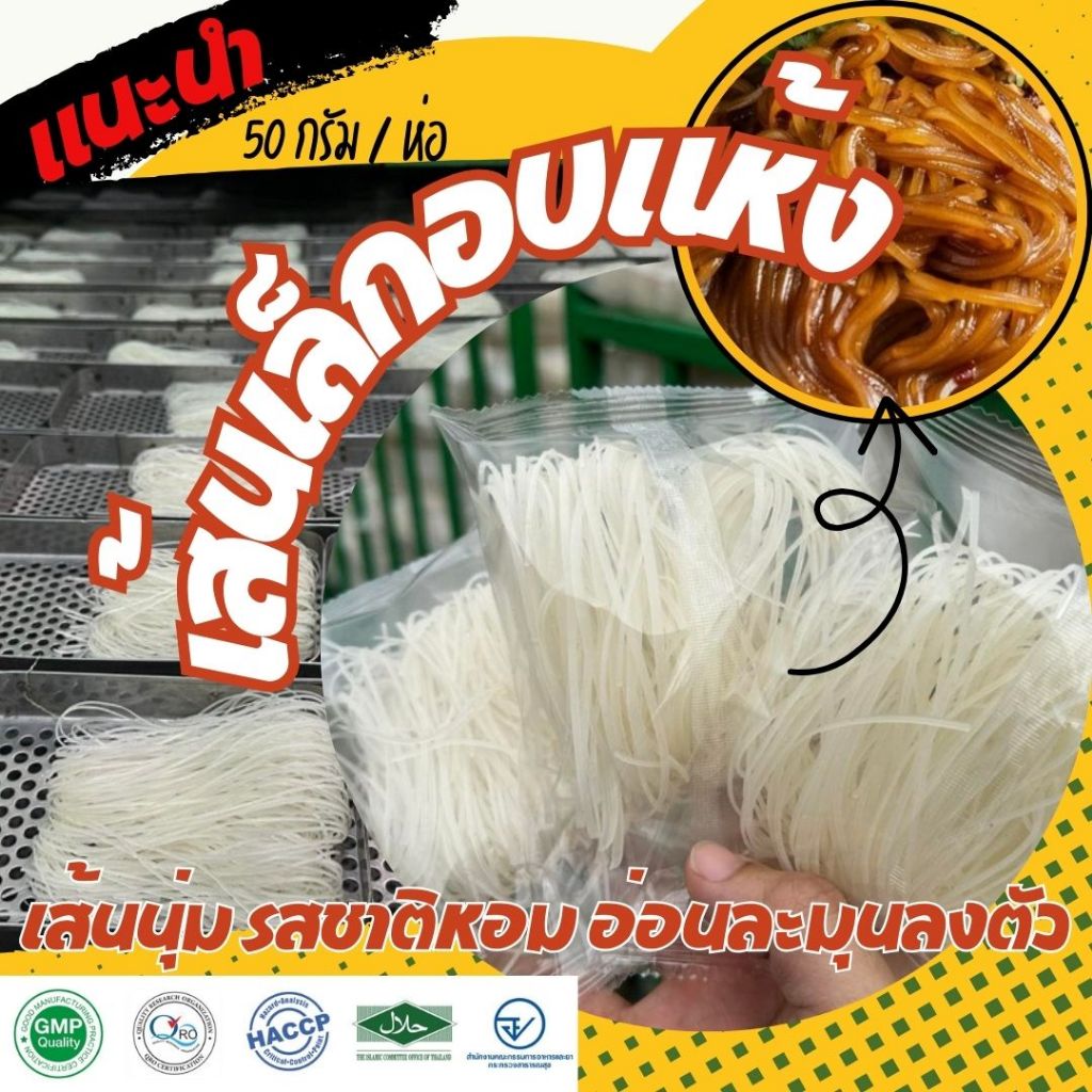 เส้นเล็กสำเร็จรูป เส้นเล็กอบแห้ง มีความนุ่ม รสชาติหอม อ่อนละมุนลงตัว ที่สำคัญ ลวกง่ายมากๆ เส้นขนมจีนอบแห้ง ขนาด 50 กรัม