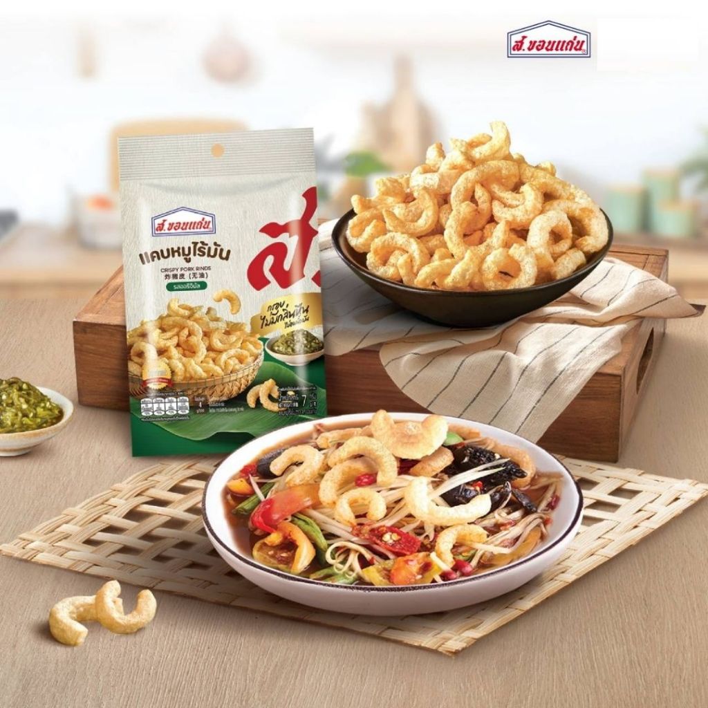 ยกลัง แคบหมู ส.ขอนแก่น 72 ห่อ ห่อละ 7 กรัม แคบหมูสีเหลืองทอง ผ่านการบวนการทอดที่ไม่อมน้ำมัน ทำให้กรอบนาน แคบหมูไร้มัน