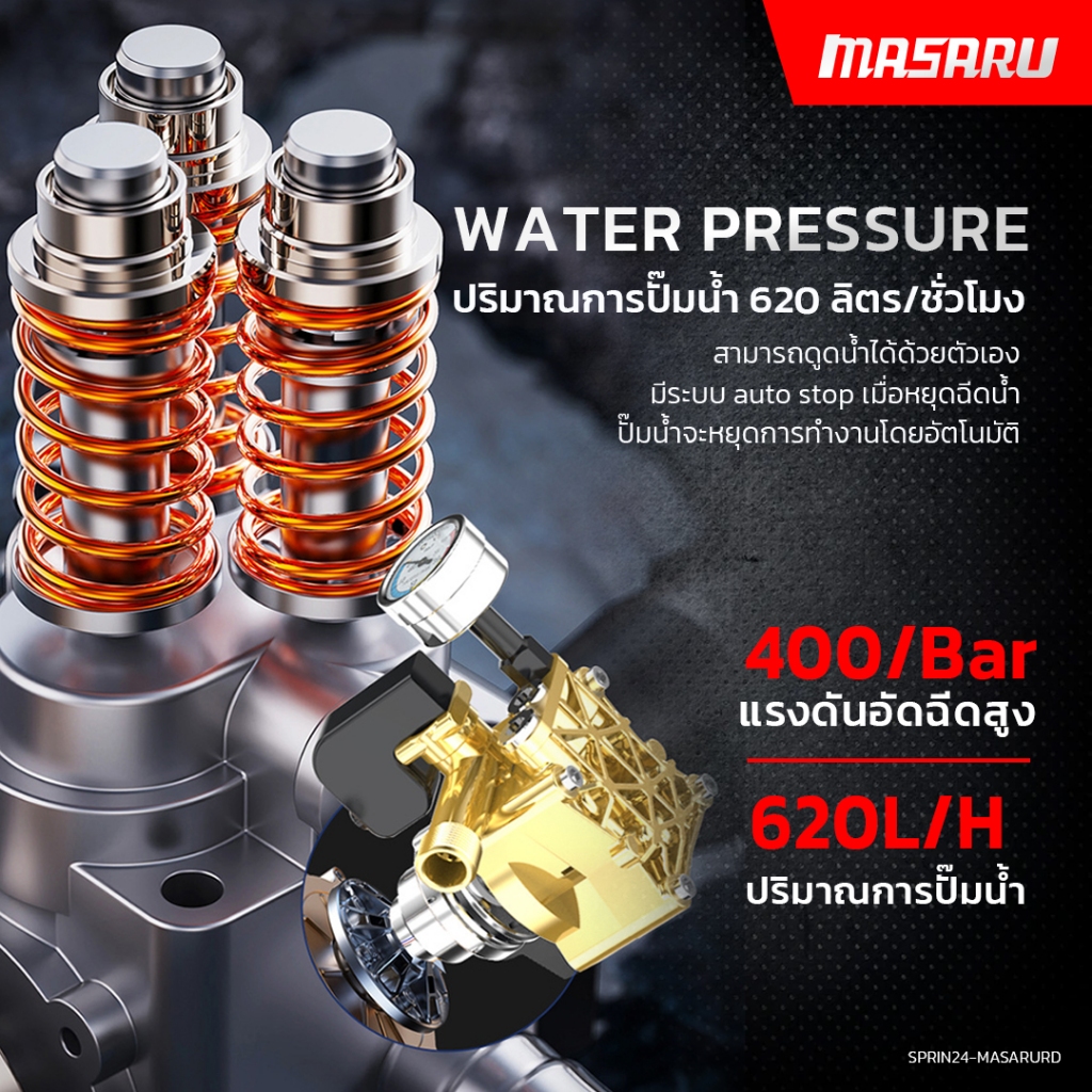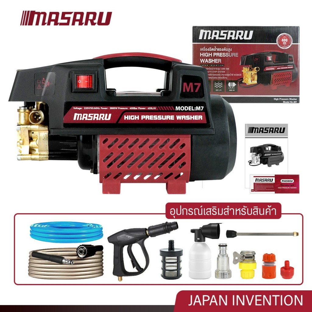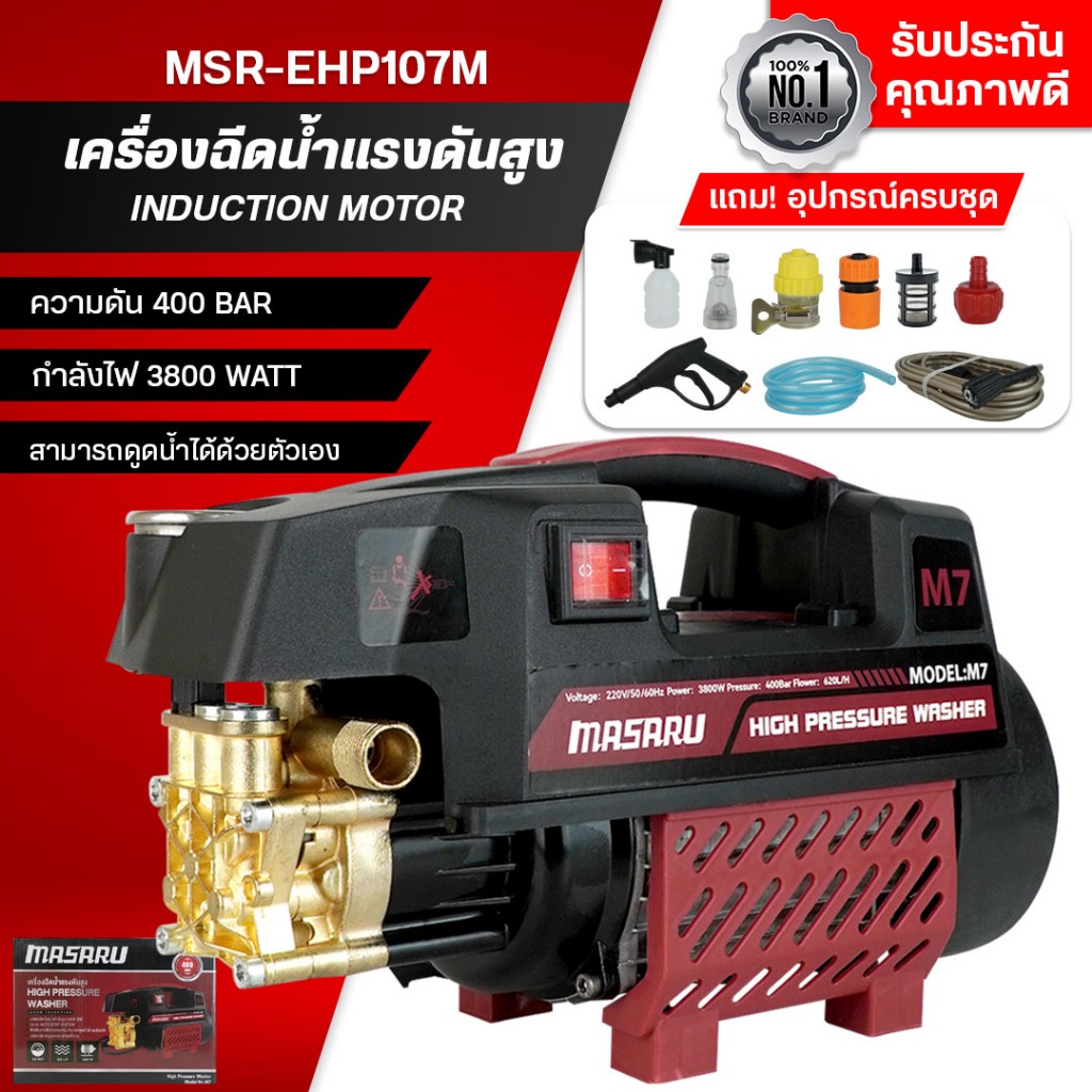 MASARU เครื่องฉีดน้ำแรงดันสูง รุ่นใหม่! มอเตอร์ดูดน้ำได้ด้วยตัวเอง มีระบบตัดไฟอัตโนมัติ ฟรีอุปกรณ์