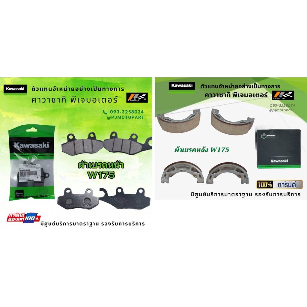 ชุดผ้าเบรคหน้า-หลัง Kawasaki W175 ของแท้จากศูนย์ 100%