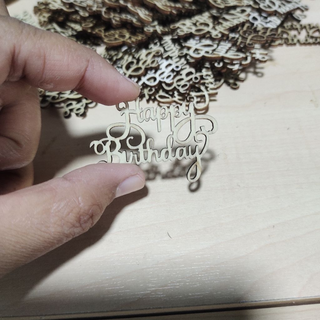 ป้าย "Happy birthday" ทำจากไม้ ตัดเลเซอร์อย่างดี ขนาดเล็ก ทำสีได้ง่ายๆ สามารถนำไปทำงาน DIY ต่างๆได้(กว้าง2ซม.xยาว5ซม.)