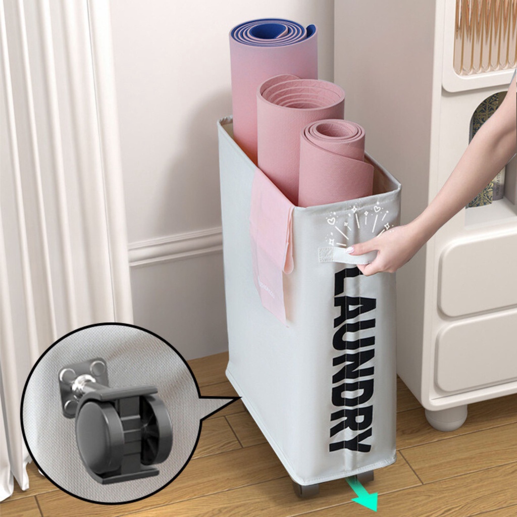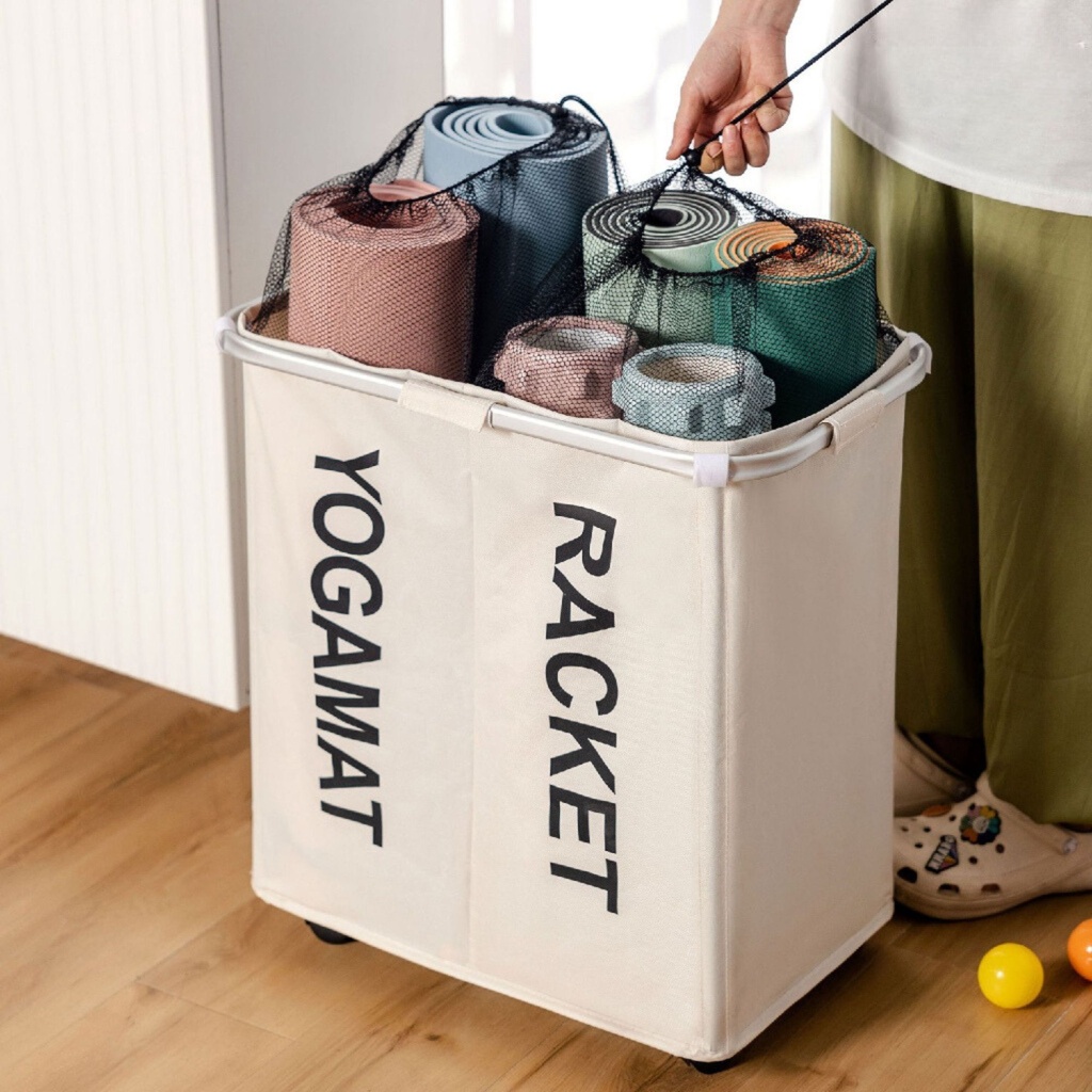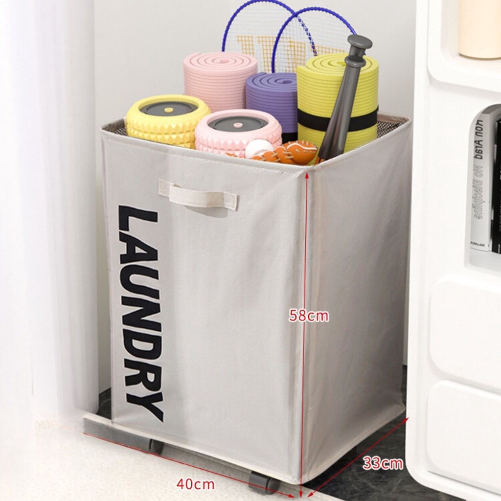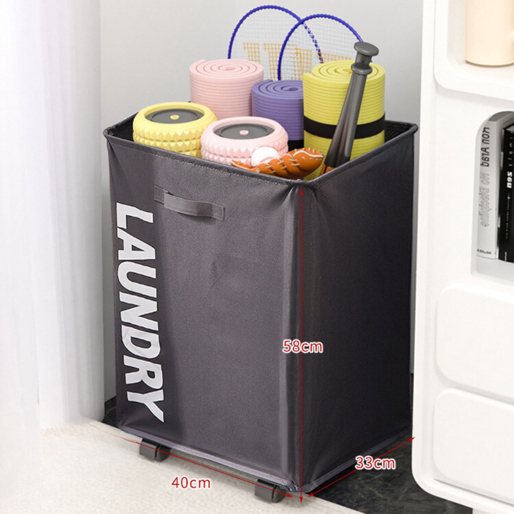 ⚡ส่งไวร้านไทย⚡ ตะกร้าผ้ามีล้อพับได้ ผ้ากันน้ำ ใช้เก็บเสื้อผ้า เก็บเสื่อโยคะ สิ่งของ มีหลายขนาด
