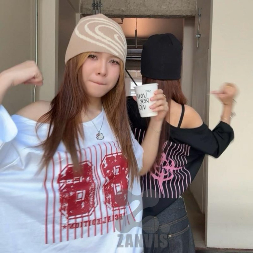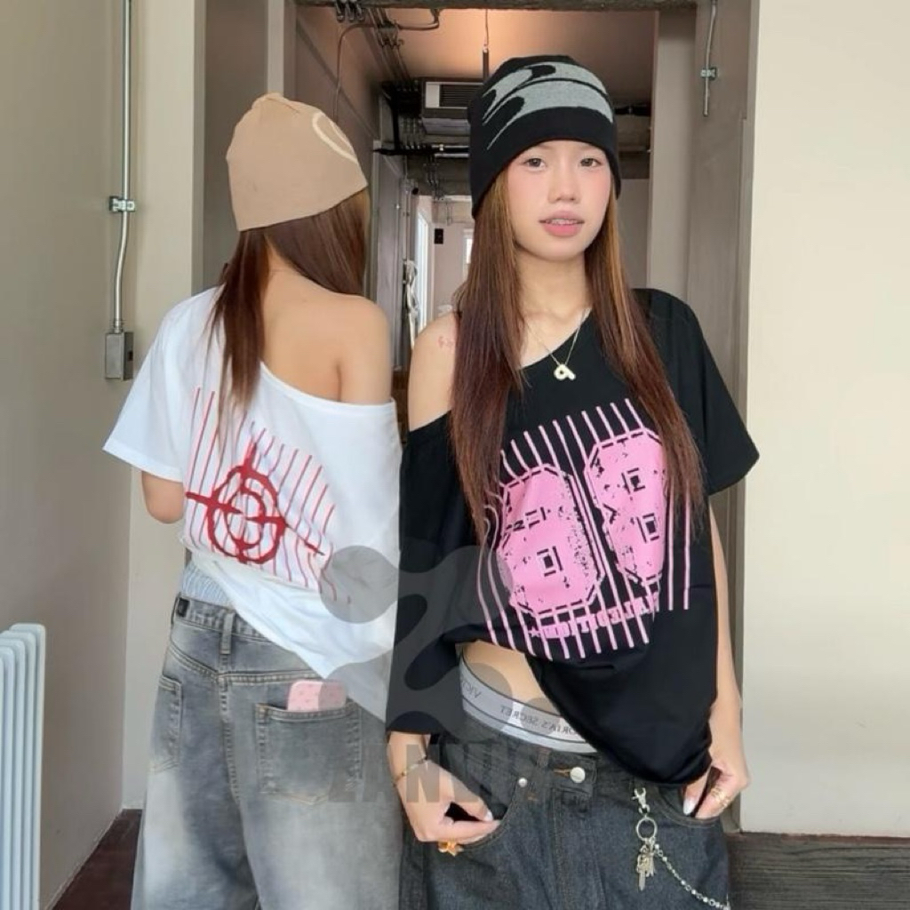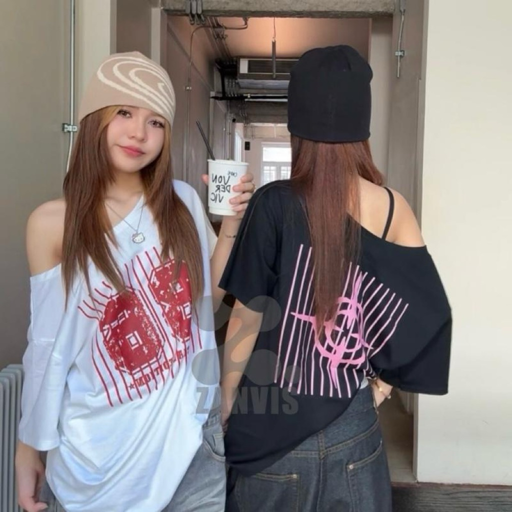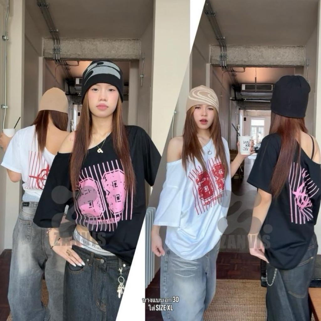 (Zanvis tee)New เสื้อยืดปาดไหล่ 4 size สกรีนลาย หน้า-หลังผ้าคอตตอล100 เนื้อนุ่ม ใส่สบาย (พร้อมส่งจากไทย)