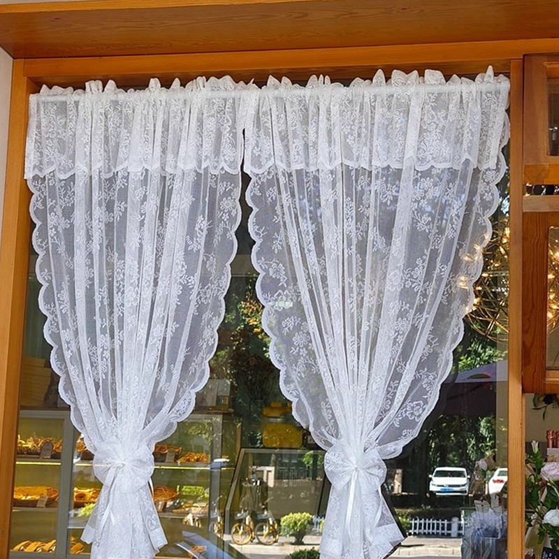 ผ้าม่านสั้น ผ้าถัก ลายดอกไม้ สีขาว สไตล์ฝรั่งเศส สําหรับห้องครัว ห้องน้ํา 2 แผง