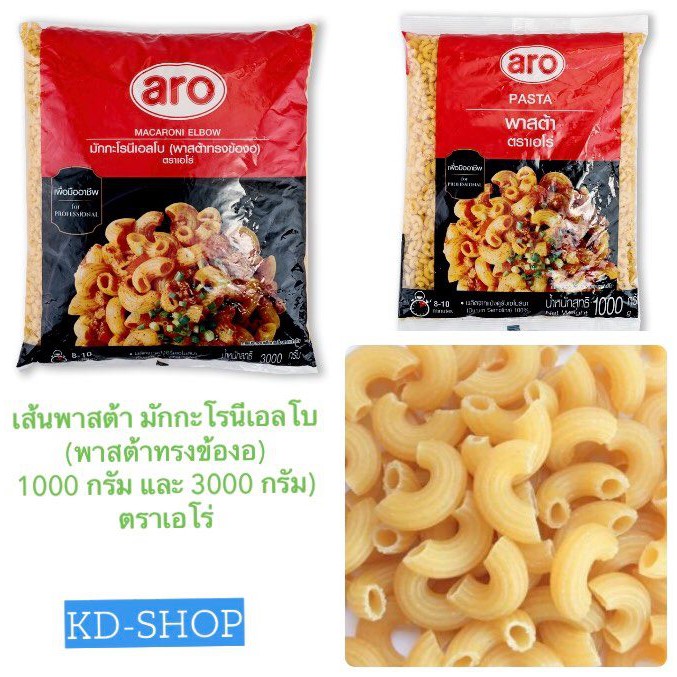 เส้นพาสต้า มักกะโรนีเอลโบ (พาสต้าทรงข้องอ)Macaroni Elbow ขนาด 1000 กรัม และขนาด 3000 กรัม ตราเอโร่