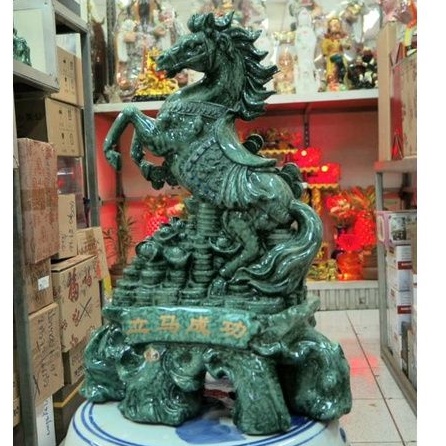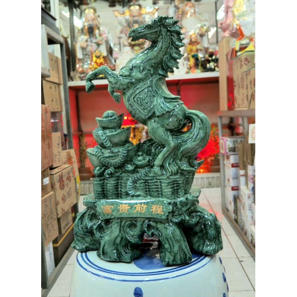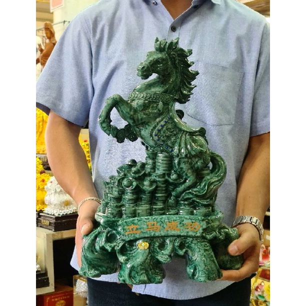 ม้ามงคลม้านำโชคม้านำความก้าวหน้าม้าลายหินสีหยกม้ายืนก้อนทองม้ายืนถุงทอง