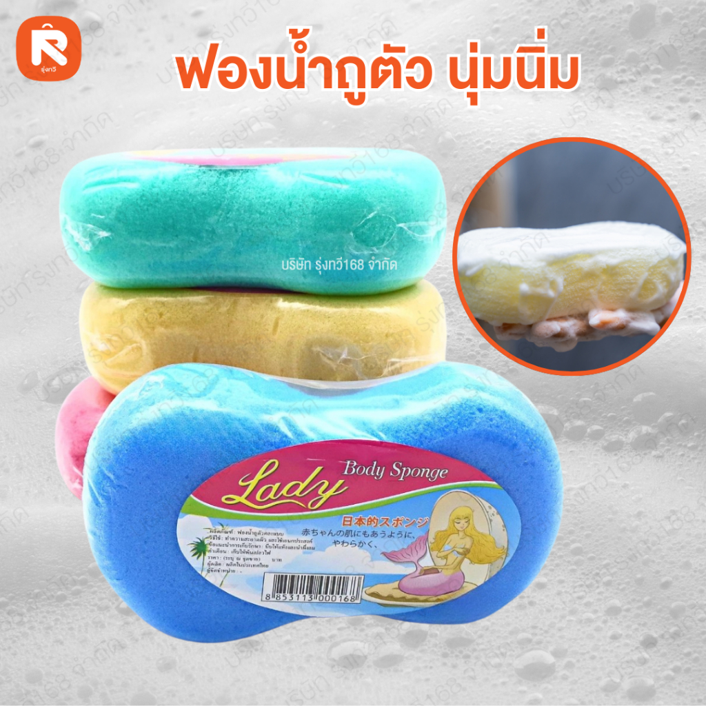 ฟองน้ำ ถูตัว นุ่มนิ่ม ไม่ระเคืองผิว หนา 5ซม.คละสี (1อัน)