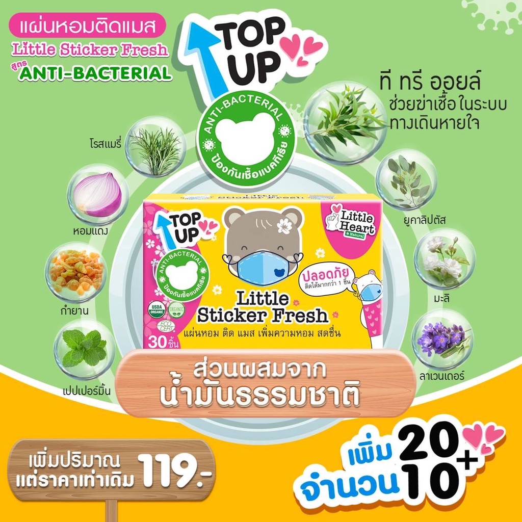 ((มีของแถม)) แผ่นหอมติดแมส Little Sticker Fresh 30 ชิ้นต่อกล่อง สติ๊กเกอร์หอมติดแมส