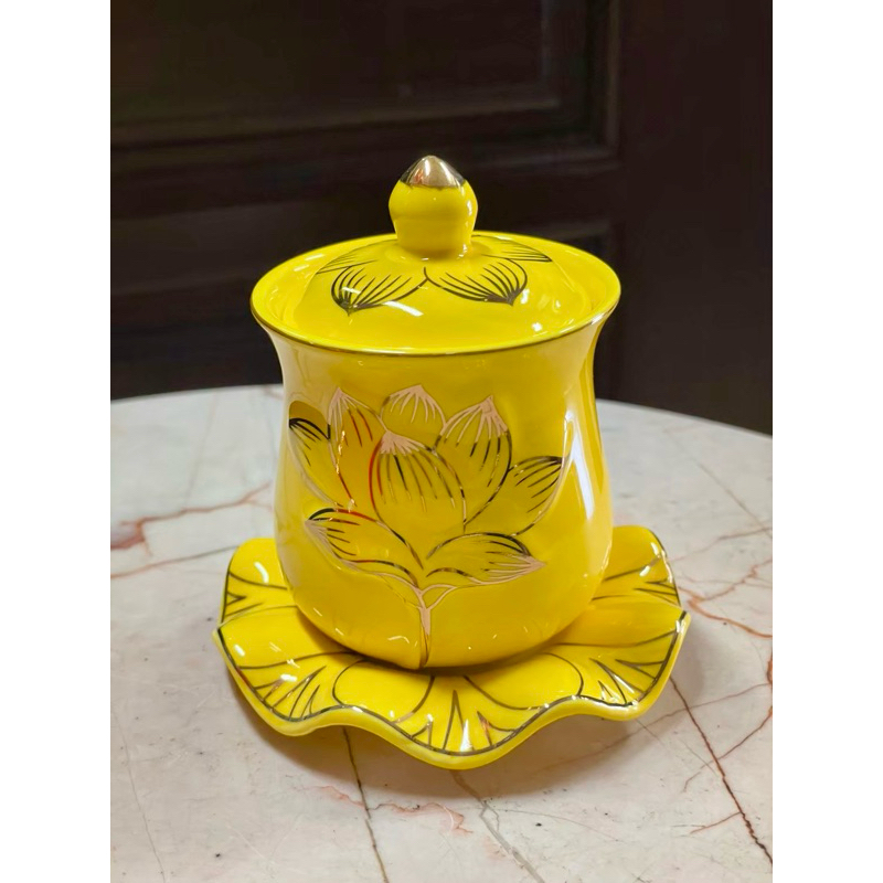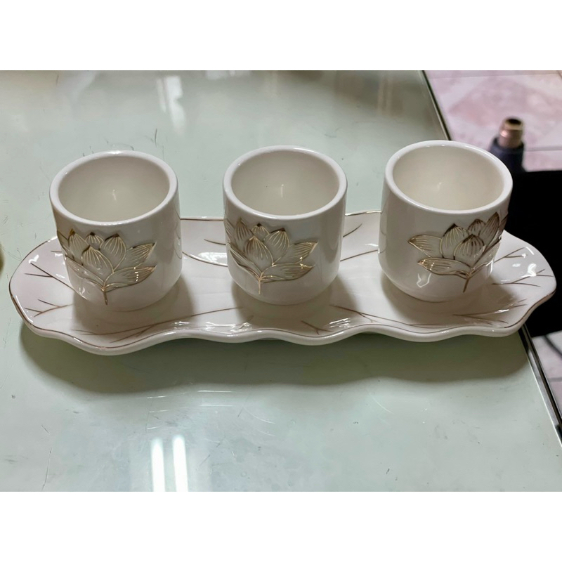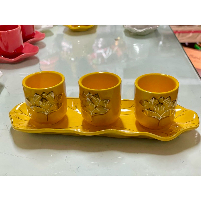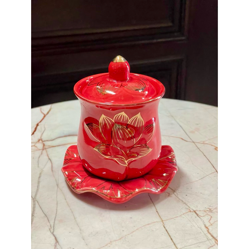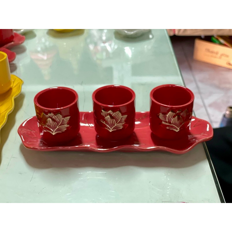 ชุดถ้วยน้ำชาเซรามิค จอกชาจีน ถ้วยน้ำชาไหว้เจ้า 5ใบ สีแดง (มีหลายแบบ)