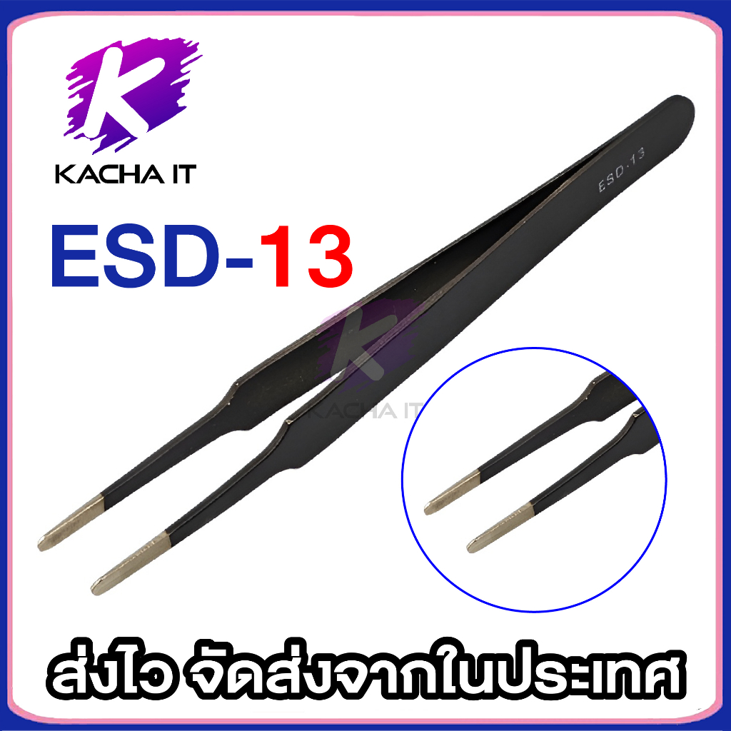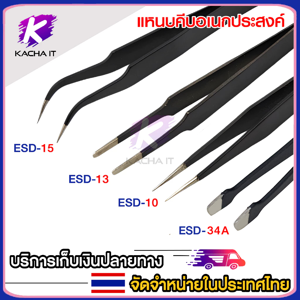 แหนบ สแตนเลสสตีล (ป้องกันไฟฟ้าสถิต) Tweezer ESD-10 ปลายหัวแหลม ตรง / ESD-13 ปลายไม่แหลม ตรง / ESD-15 ปลายหัวแหลม โค้ง