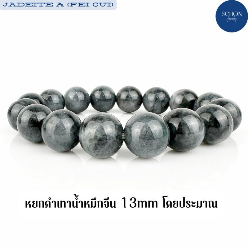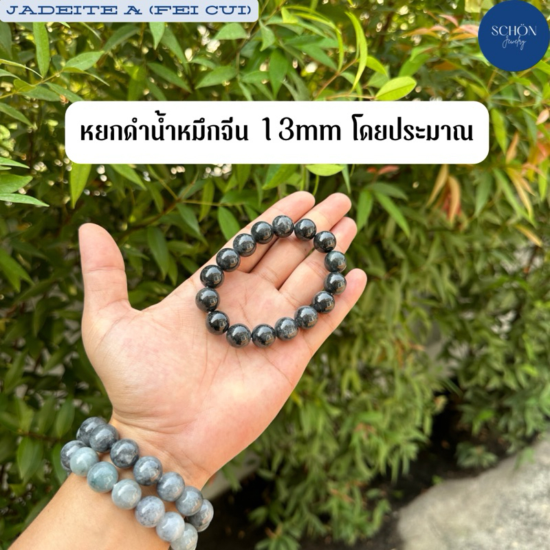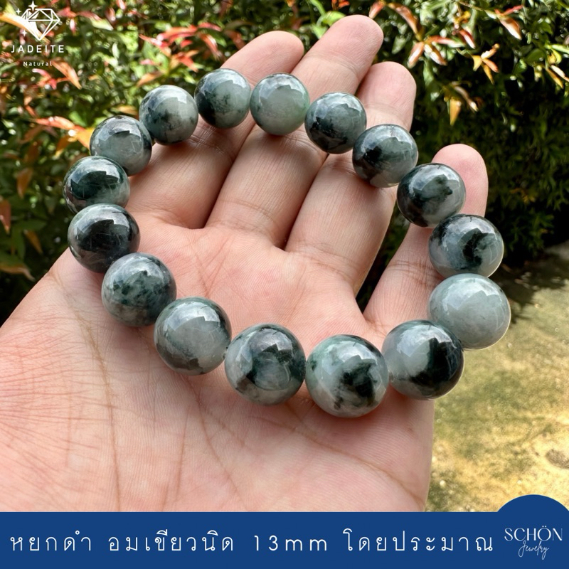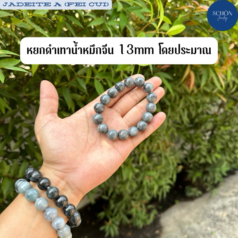 13JA-BA สร้อยข้อมือหยกดำ ขนาด 13มิล เม็ดใหญ่ เงาดี สวย พบน้อย ร้อยไหมยืด กำไลหยกดำ หยกแท้ หยกพม่า