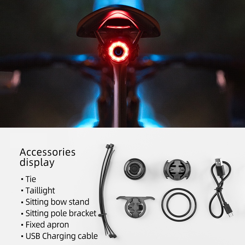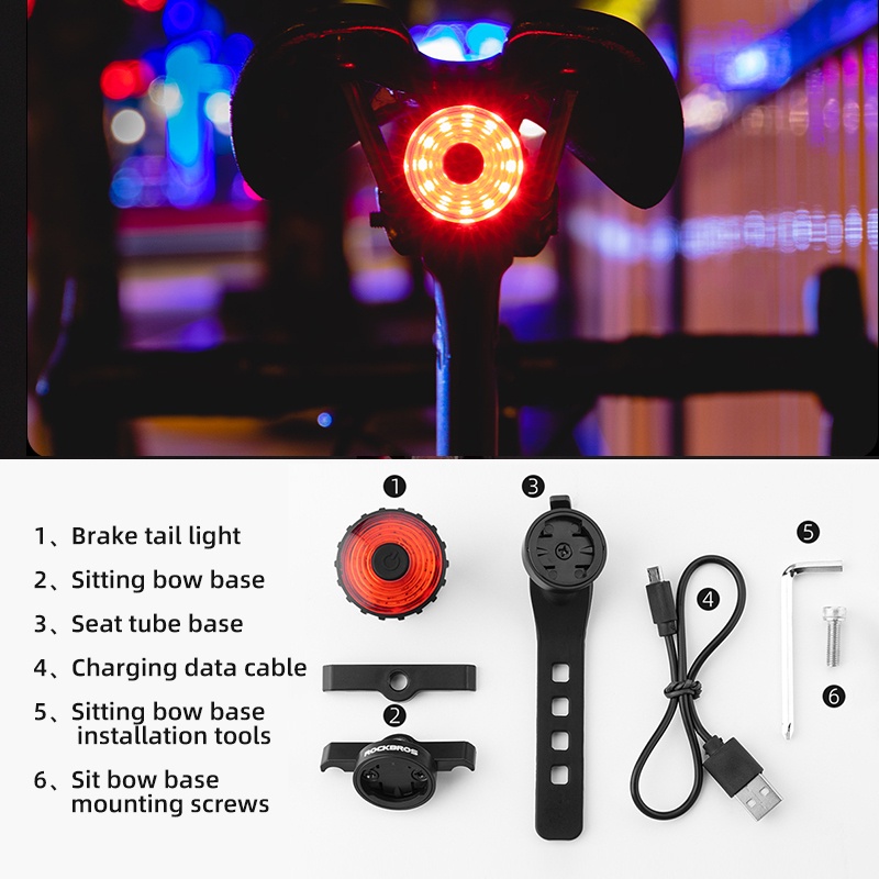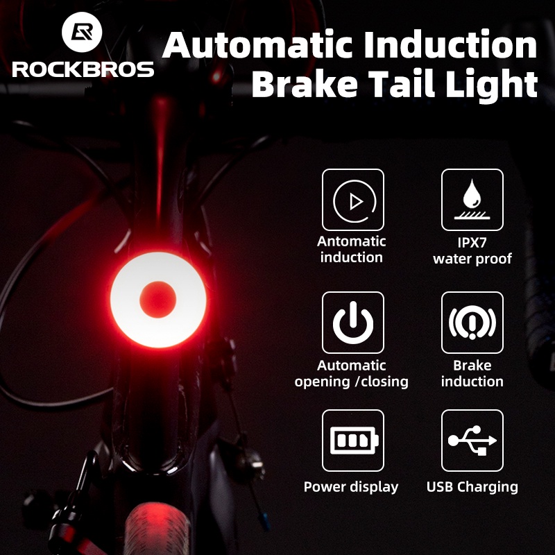 Rockbros ไฟท้ายจักรยาน อัจฉริยะ ตรวจจับเบรกอัตโนมัติ กันน้ํา ชาร์จ USB อุปกรณ์เสริม สําหรับจักรยานเสือภูเขา