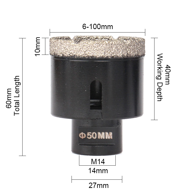 ดอกสว่านโฮลซอ ก้านเกลียว M14 6-130 มม. สําหรับเครื่องเจียรมุม กระเบื้อง เซรามิค แกรนิต หินอ่อน 1 ชิ้น