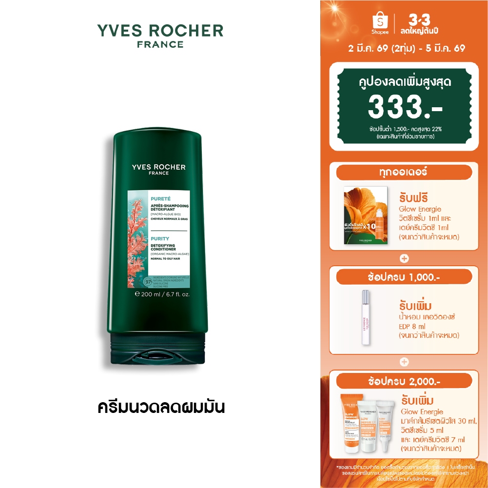 อีฟ โรเช Yves Roche Purity Detoxifying Conditioner 200ml. ครีมนวดสำหรับผมมัน หอมสะอาดสดชื่น บำรุงเส้นผม