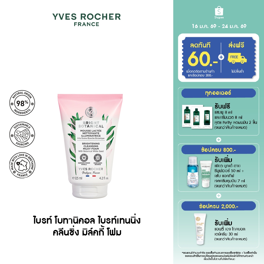 อีฟ โรเช Yves Rocher Bright Botanical Brightening Cleansing Milky Foam 125 มล. มูสทำความสะอาด