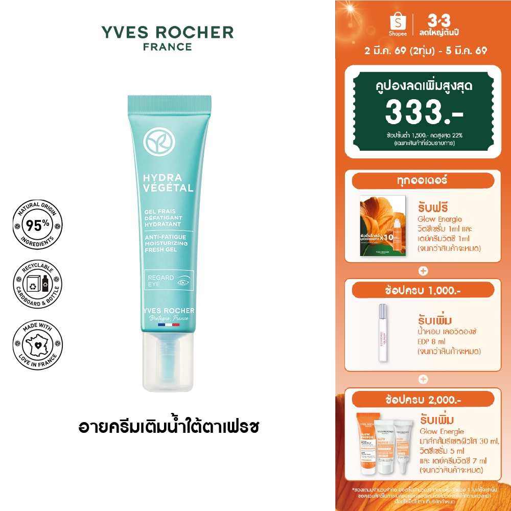 อีฟ โรเช Yves Rocher Hydra Anti-Fatigue Eye Gel 15 มล. ไฮดร้า อายครีม อายเจล- ฟื้น คืนผิวใต้ตาดูอิ่มน้ำ เฟรช กระจ่างใส