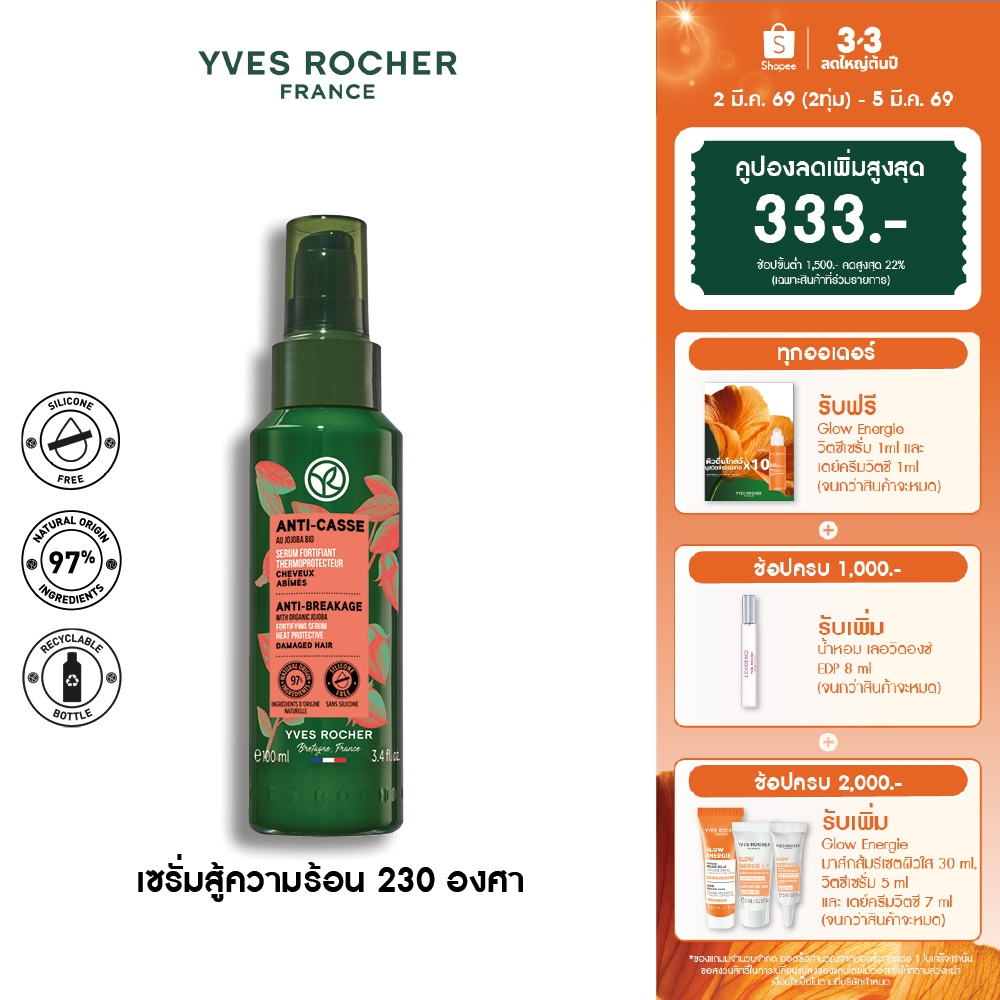 อีฟ โรเช Yves Rocher Anti-Breakage Heat Protective Fortifying Serum 100 มล. เซรั่มปกป้องเส้นผมจากความร้อน รีแพร์ถึงแกน