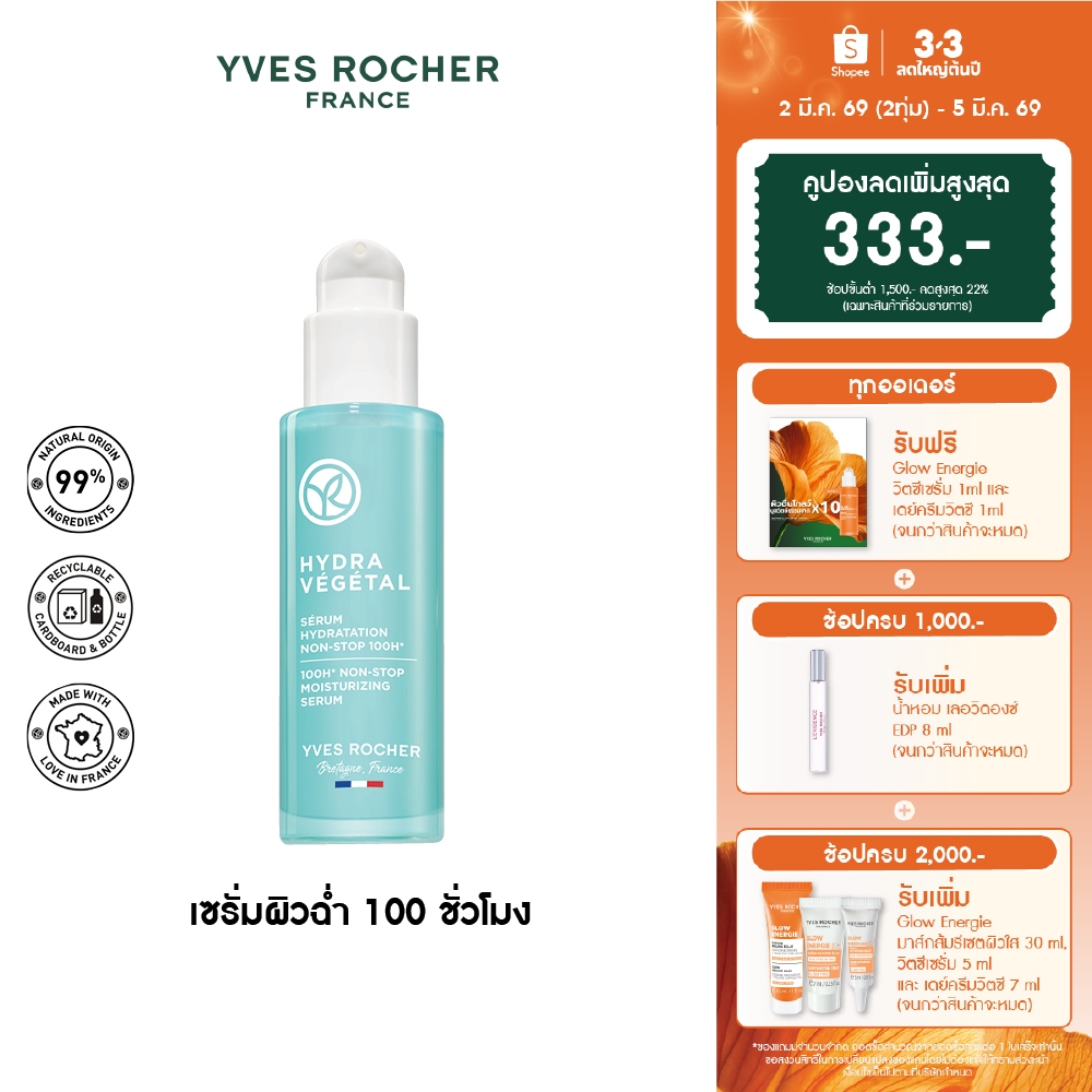 อีฟ โรเช Yves Rocher Hydra 100H Non-Stop Moisturizing Serum30 มล. ไฮดร้า เซรั่มล็อค ความชุ่มชื้น