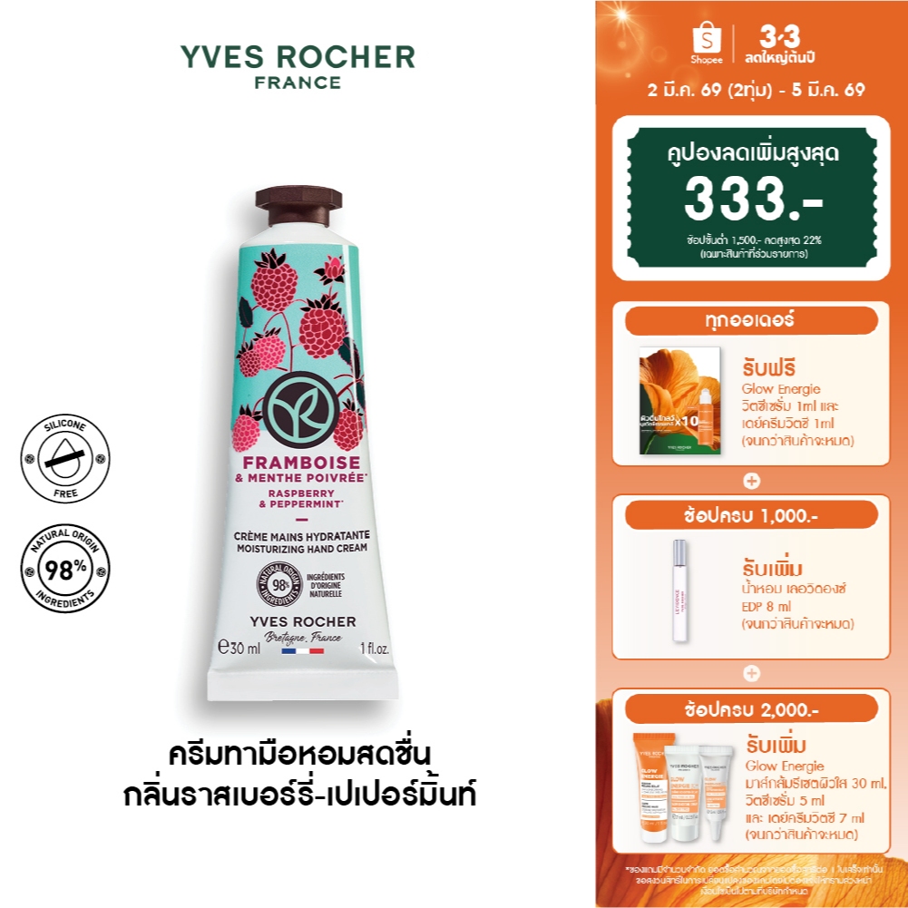 อีฟ โรเช Yves Rocher Raspberry & Peppermint Hand Cream 30มล. ครีมทามือ กลิ่นราสเบอร์รี่-เปเปอร์มิ้นท์ บำรุงผิวมื อ