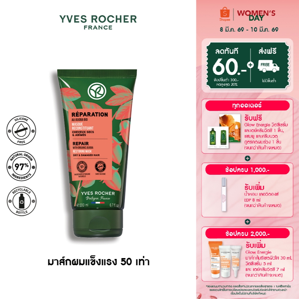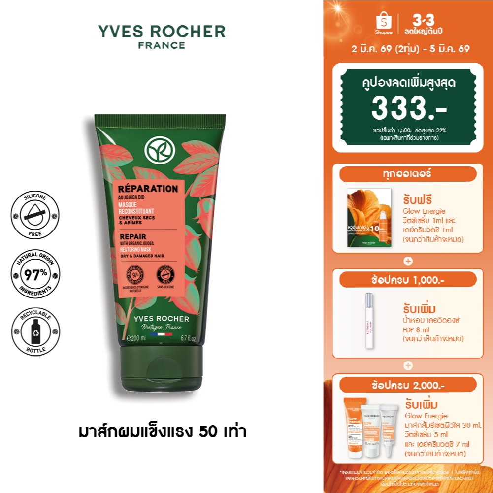 อีฟ โรเช Yves Rocher Repair Restoring Mask 200 มล. มาส์กแก้ผมเสีย - รีแพร์ถึงแกน คืนเส้นผมนุ่มลื่น มีชีวิตชี วา