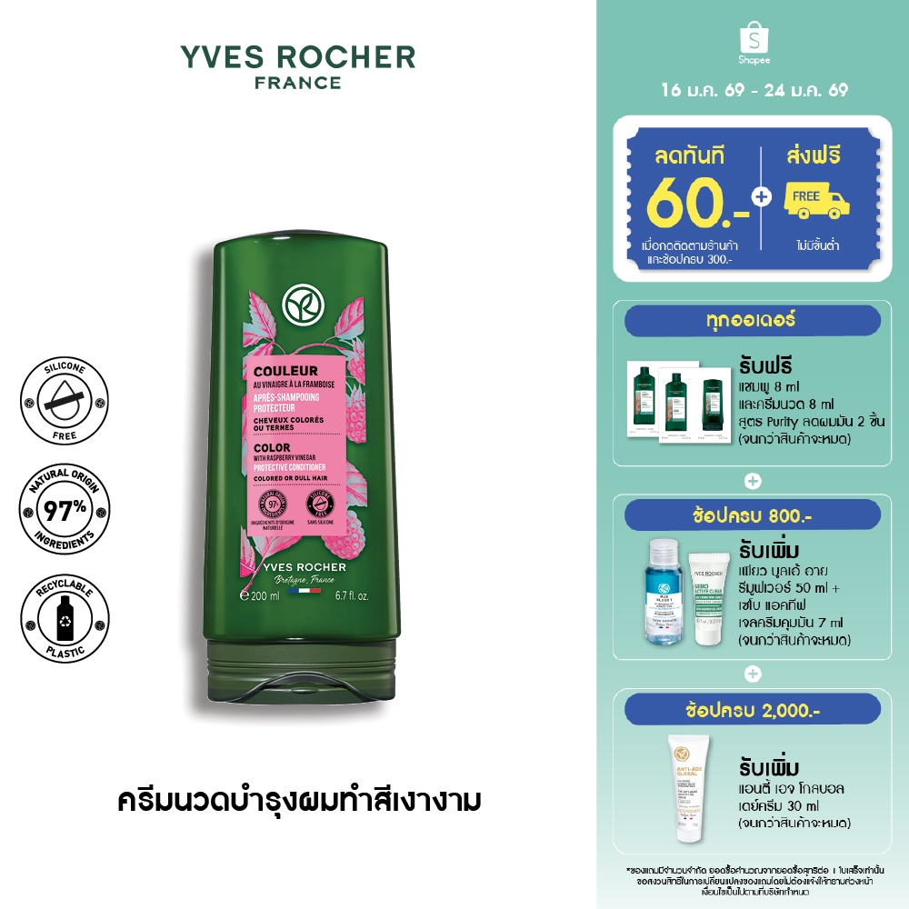 อีฟ โรเช Yves Rocher Color Protective Conditioner 200 มล. ครีมนวดผมทำสี - จบปัญหาสีผมเฟด ยืดอายุผมทำสีให้ไชน์ทุกสีผม