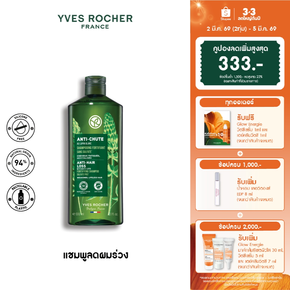 อีฟ โรเช Yves Rocher Anti-Hair Loss Shampoo 300 ml. แชมพูดูแลปัญหาผมหลุดร่วง 300 มล. - แชมพู ผมขาดหลุดร่วงง่าย
