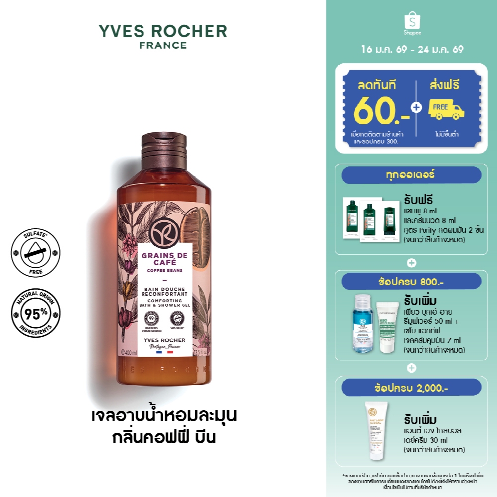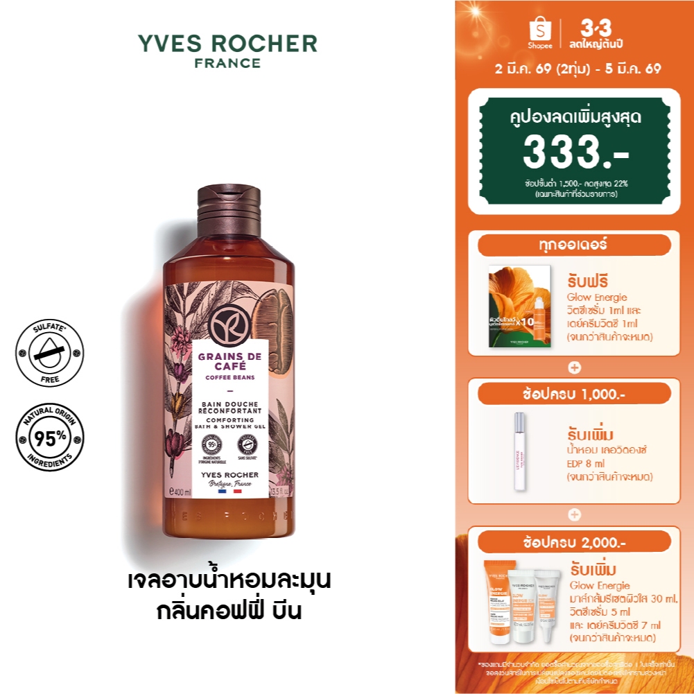 อีฟ โรเช Yves Rocher Coffee Beans Comforting Bath & Shower Gel 400 มล.เจลอาบน้ำ กลิ่นคอฟฟี่ บีน - ครีมอาบน้ำ สบู่