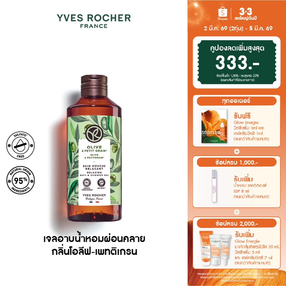 อีฟ โรเช Yves Rocher Olive & Petitgrain Relaxing Bath&Shower Gel 400 มล. เจลอาบน้ำกลิ่นโอลีฟ-เพทติเกรน อาบหอมฟิน