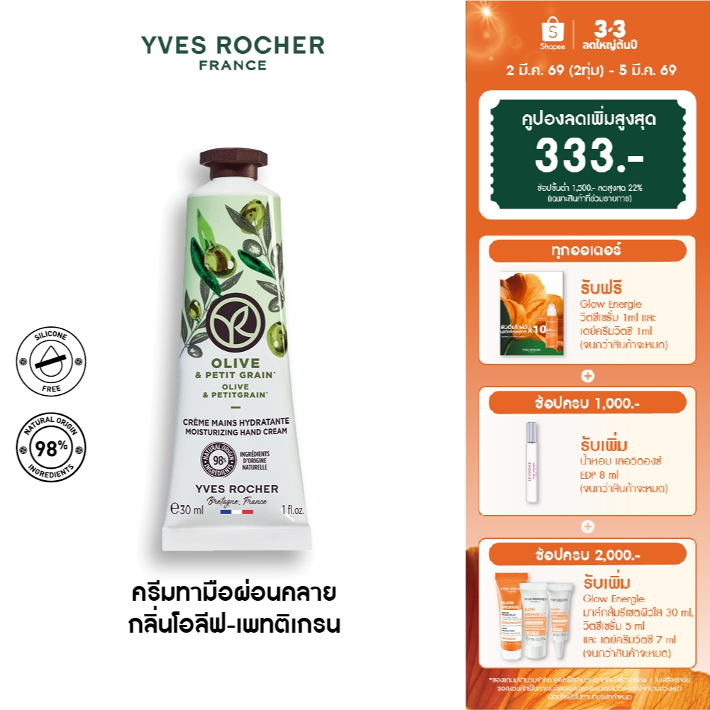 อีฟ โรเช Yves Rocher Olive & Petitgrain Hand Cream 30มล. ครีมทามือ กลิ่นโอลีฟ-เพทติเกรน บำรุงผิวมือนุ่ม ชุ่มชื้น