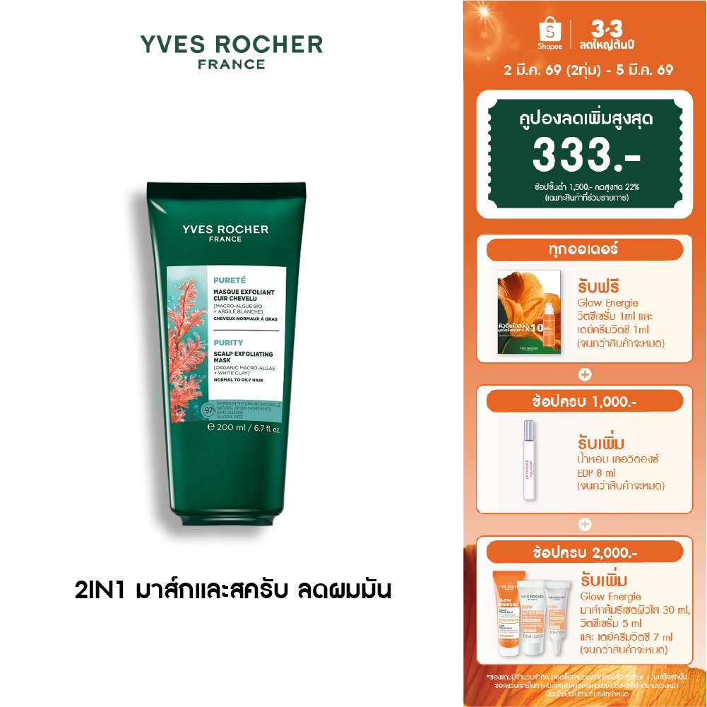 อีฟ โรเช Yves Roche Purity Scalp Exfoliating Mask 200ml. 2in1 มาส์กและสครับทำความสะอาดหนังศีรษะ สำหรับผมมัน