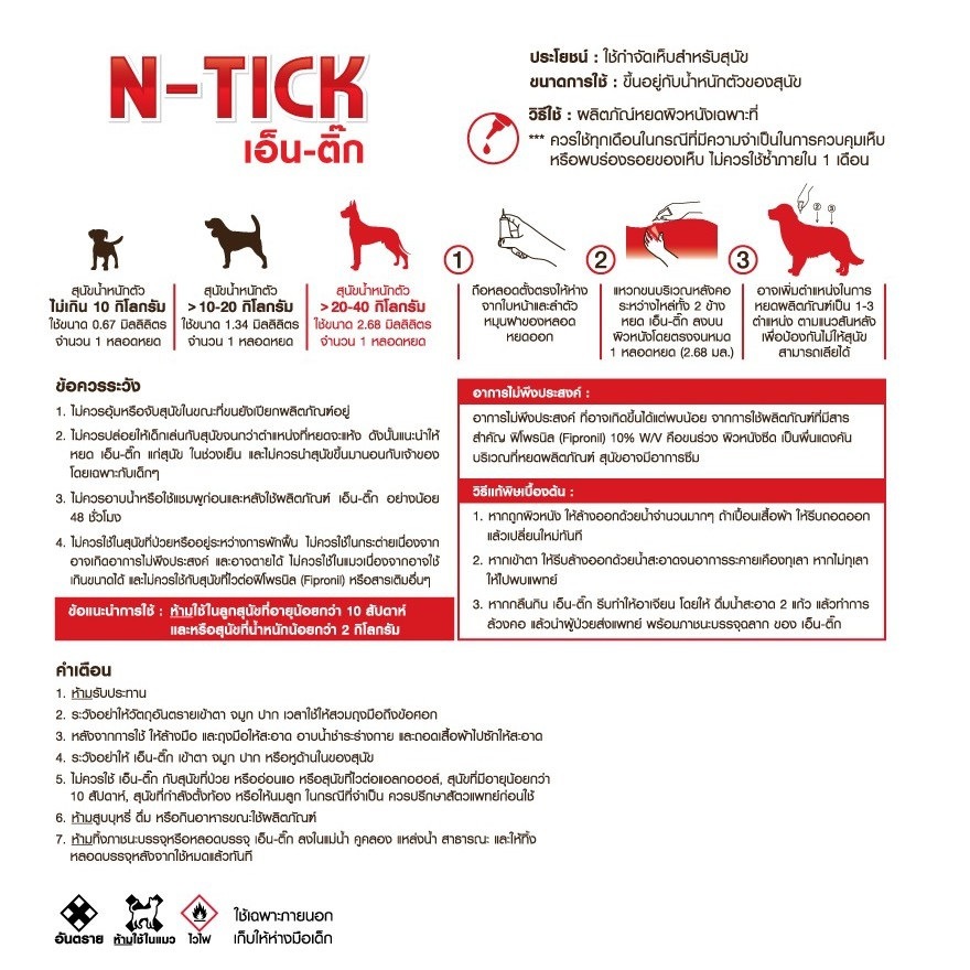 AL-2002 AG-SCIENCE(N - tick)แอคซายน์(เอ็นติ๊ก) ผลิตภัณฑ์กำจัดเห็บ(สีแดง) 1 กล่อง = 1 หลอด😜🐶