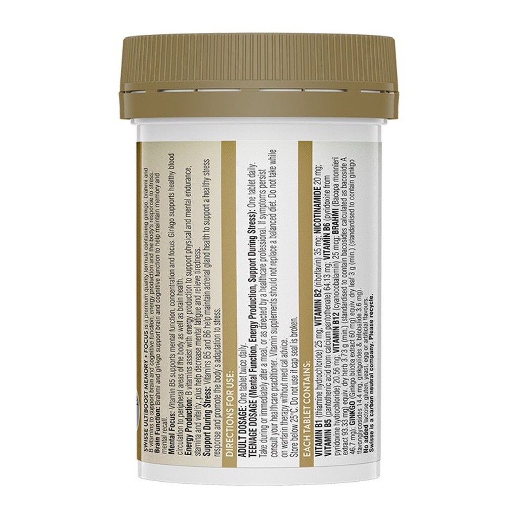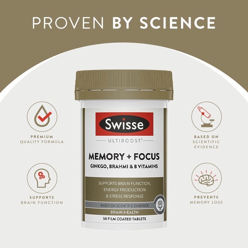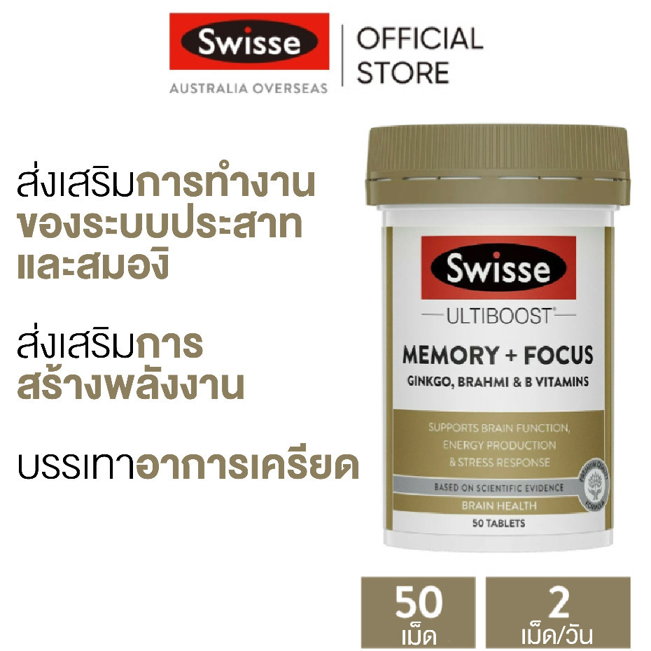 Swisse Ultiboost Memory + Focus อัลตร้าบูสบำรุงความจำ + สมาธิ 50 เม็ด (EXP:08 2028)