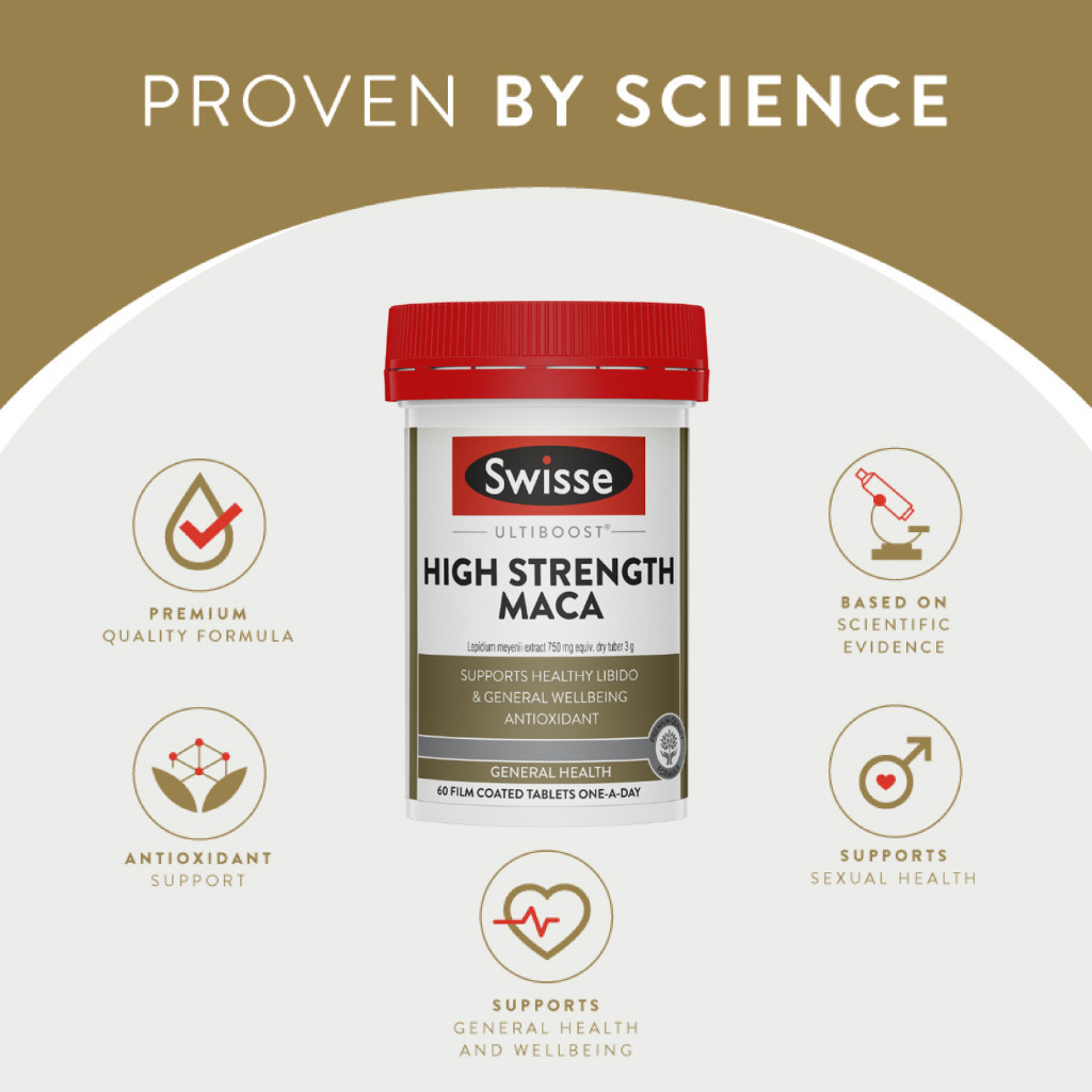 Swisse Ultiboost High Strength Maca (EXP:01 2028) วิตามินสำหรับผู้ชาย เพิ่มความแข็งแรงสูง มาเก๊า สมรรถภาพทางเพศ สารต้านอนุมูลอิสระ (วันหมดอายุ:01/2028) [ระย ะเวลาส่ง: 5-10 วัน]