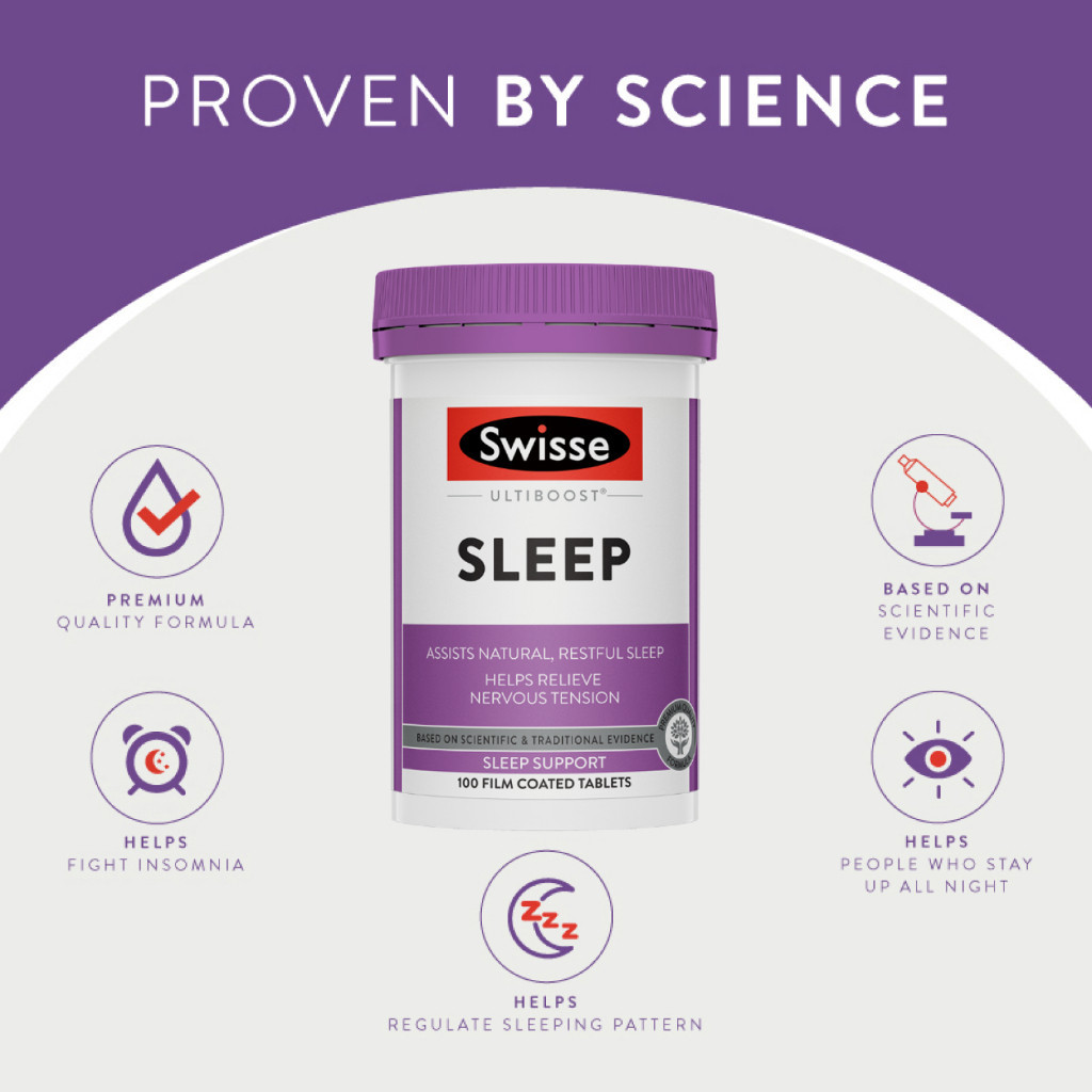 Swisse Ultiboost Sleep อัลตร้าบูส เพื่อการนอนหลับ 100 เม็ด (EXP:08 2028)