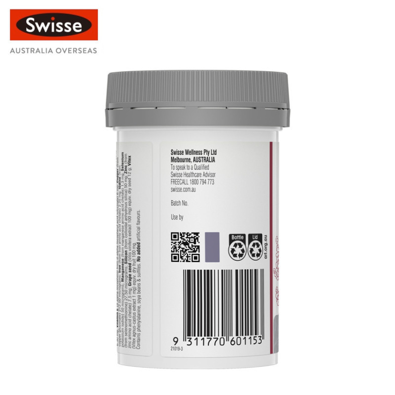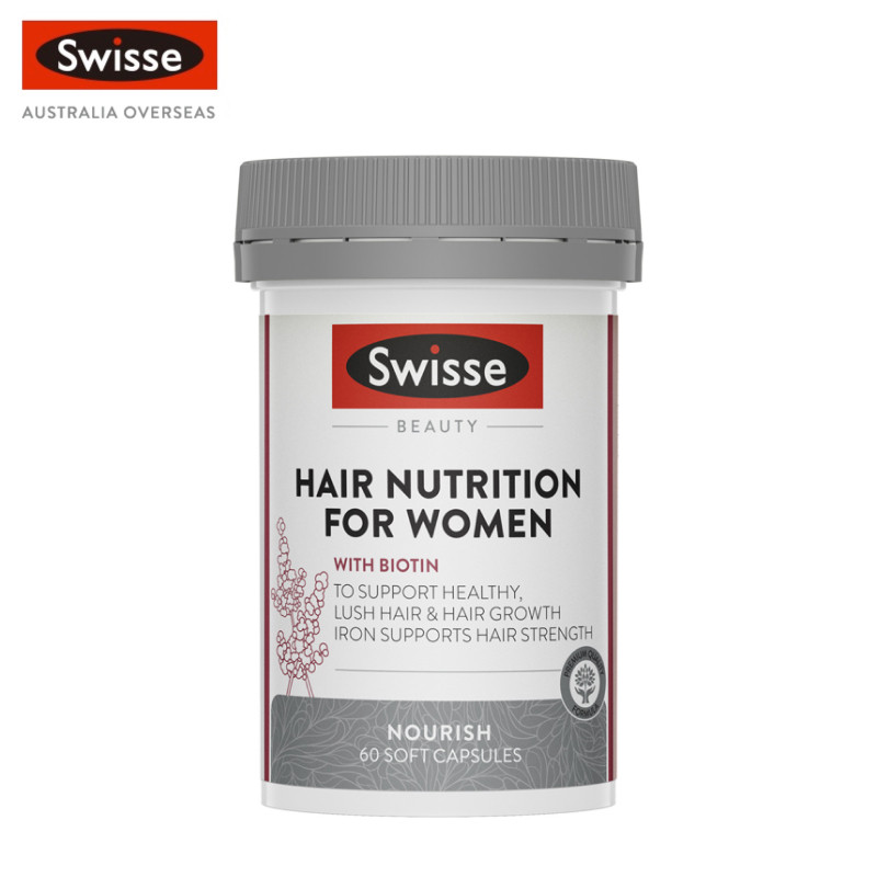 Swisse Ultiboost Hair Nutrition For Women อัลตร้าบูส ดูแลสารอาหารเส้นผม สำหรับผู้หญิง 60 แคปซูล (EXP:03 2028)