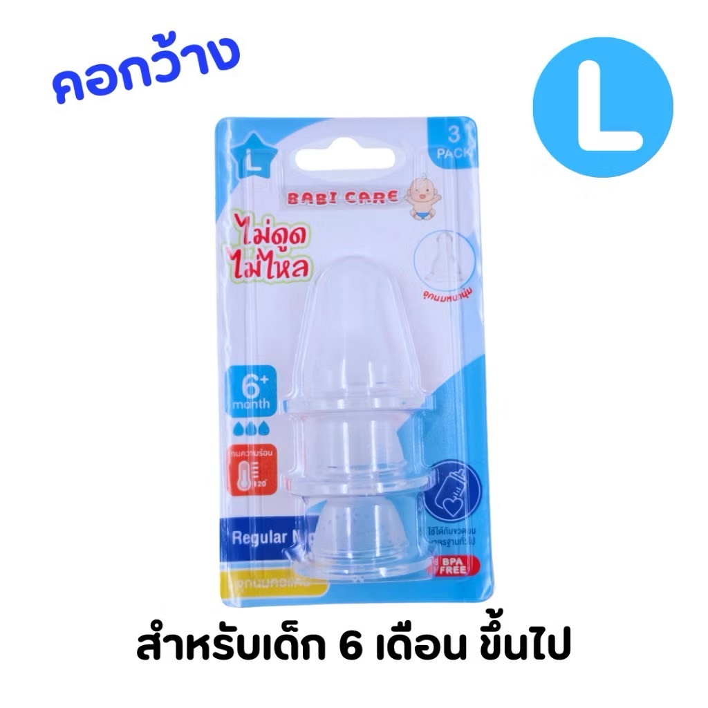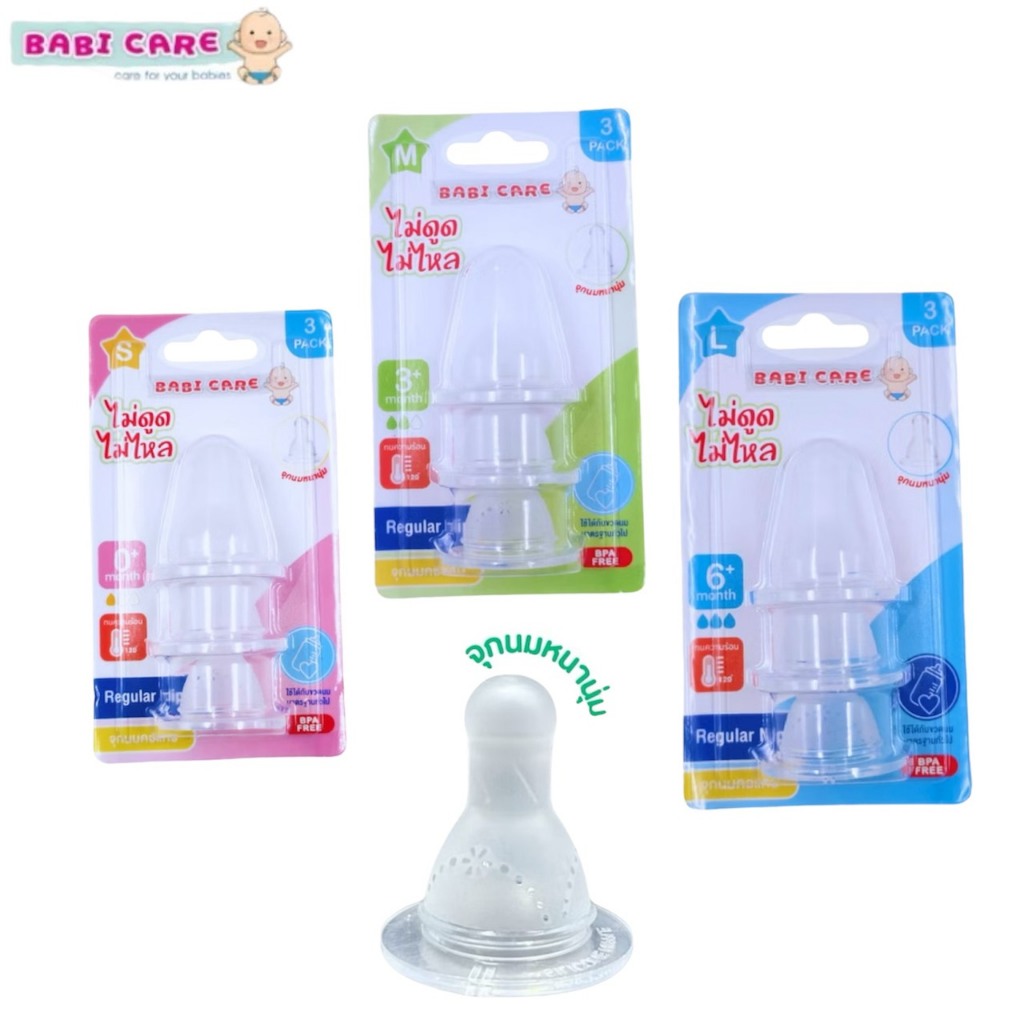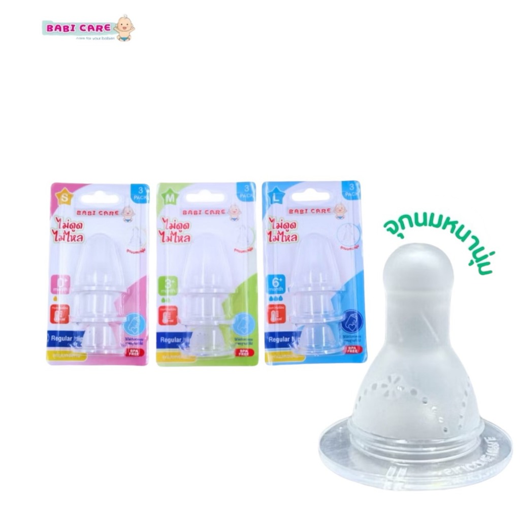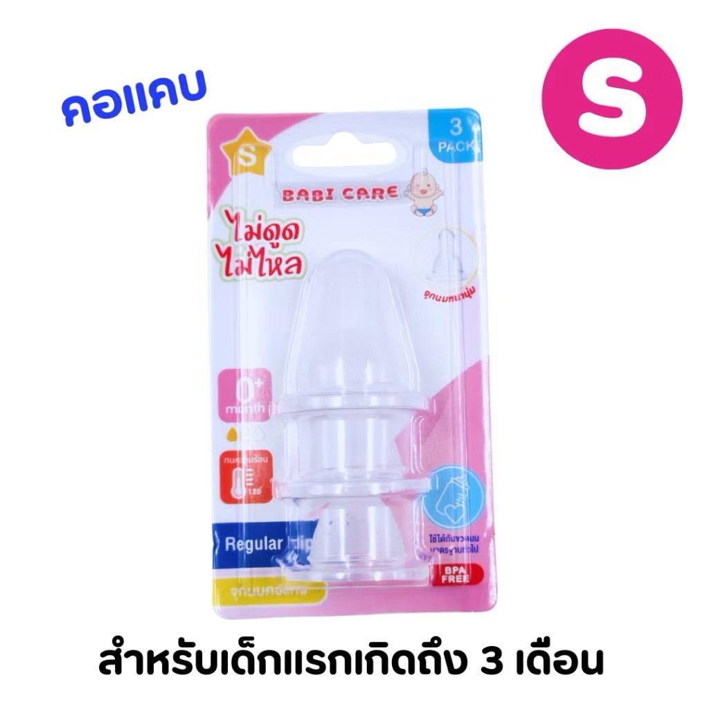 BABI CARE(จุกนม) เบบี้แคร์ จุกนมคอแคบ ไม่ดูดไม่ไหล (แพ็คมี3ชิ้น) ไซร์ S/M/L