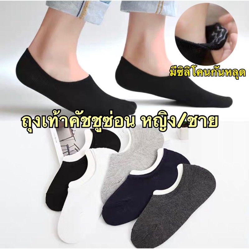 ถุงเท้าคัชชูซ่อน หญิง/ชาย มีซิลิโคนกันหลุด(ทรงMuji)