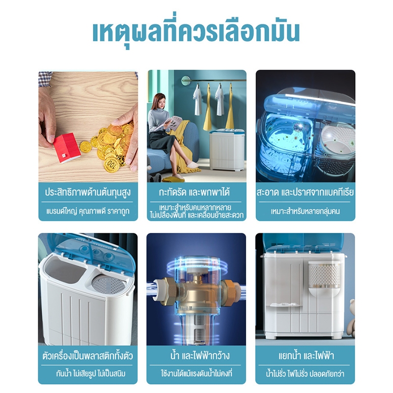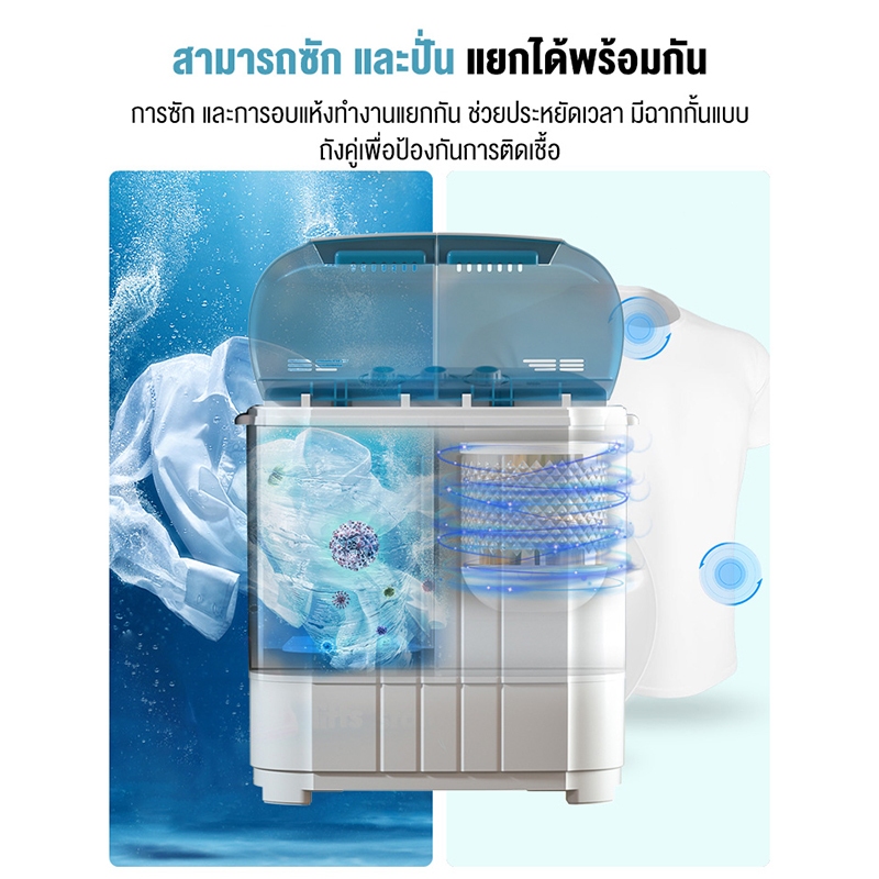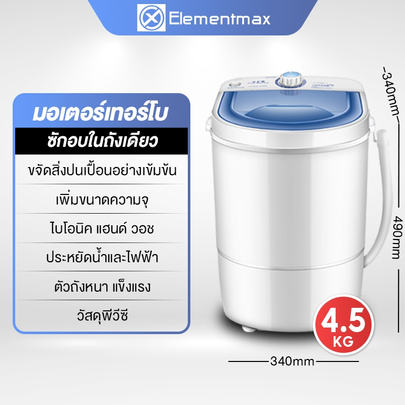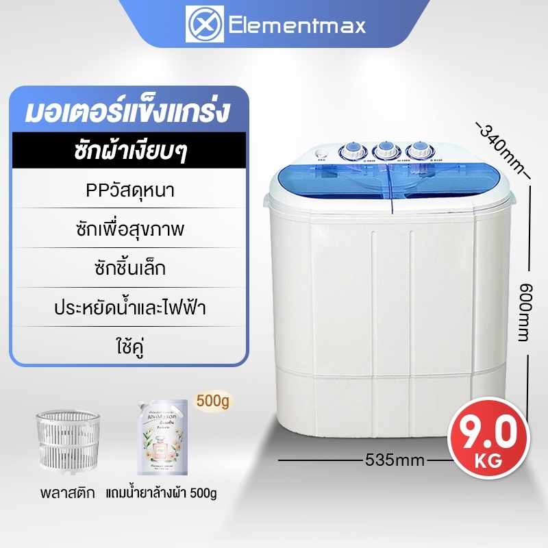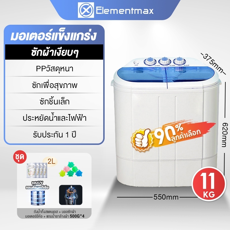 Elementmax ฟังก์ชั่น 2 In1 ซักและปั่นแห้งในตัวเดียวกันเครื่องซักผ้ามินิฝาบน เครื่องซักผ้ามินิ sonar ขนาดความจุ สีฟ้า11KG