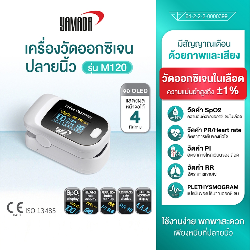 YAMADA (ประกัน1ปี) เครื่องวัดออกซิเจนปลายนิ้ว อัตราการเต้นของหัวใจจอปรับได้ 4 ทิศทาง รุ่น M120