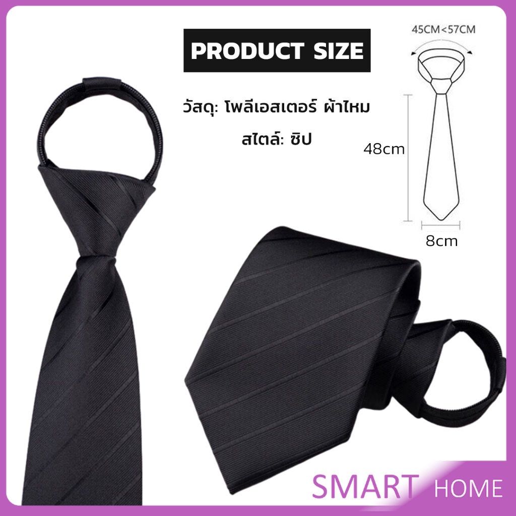 SMART เนคไทแฟชั่นผู้ชาย เนคไทนักธุรกิจ สีพื้น แบบซิป ไม่ต้องผูก Men's tie
