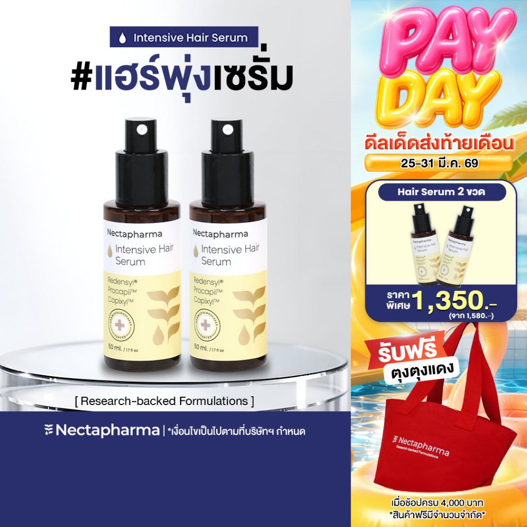 [2 ขวด] Intensive Hair Serum เซรั่มลดผมร่วง ผมบาง เพิ่มผมใหม่ จาก Nectapharma ใส่ Redensyl Procapil Capixyl