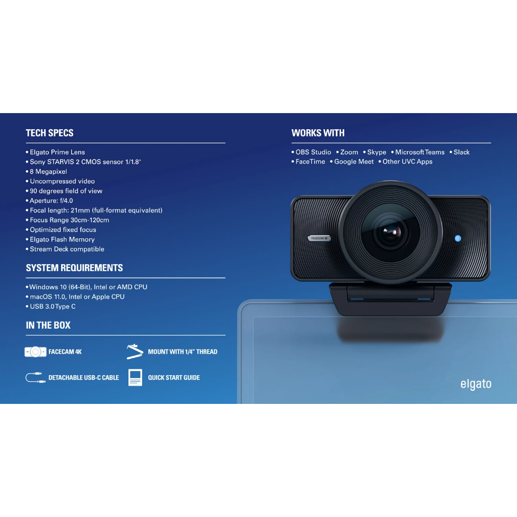 ELGATO FACECAM 4K60 Studio WEBCAM 10WAF9901 กล้องเว็ปแคม ความคมชัดสูงระดับ 4K ไลฟ์สดOBS มีซอล์ฟแวร์ [กรุงเทพฯส่งด่วน]