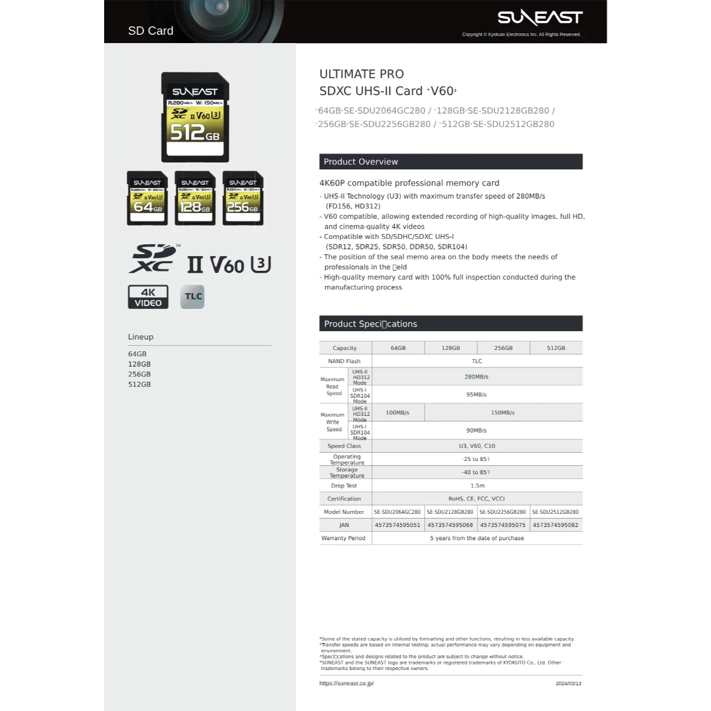 [กรุงเทพฯส่งด่วน] SUNEAST ULTIMATE PRO SDXC UHS-II V60 Card ประกันศูนย์ไทย