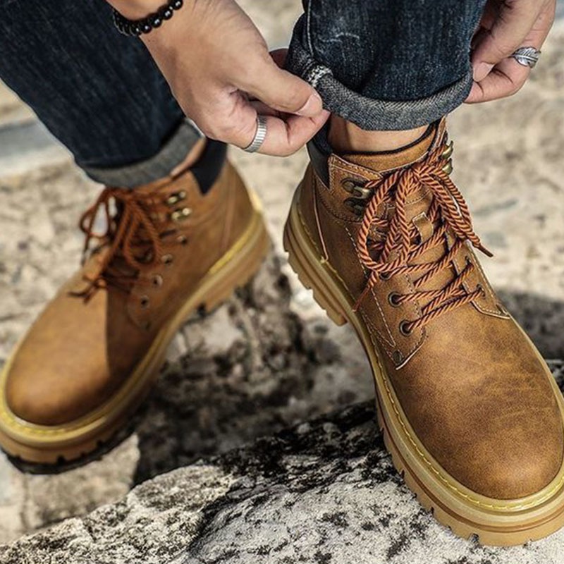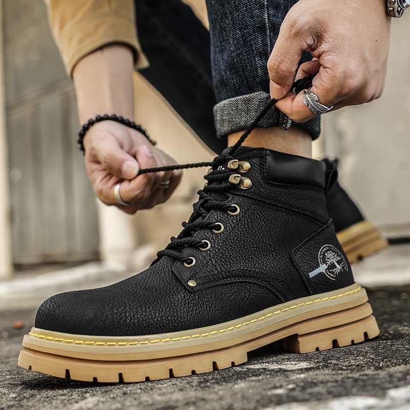 ส่งจากไทย 😎 รองเท้าบูทมาร์ตินย้อนยุคสำหรับผู้ชาย วัสดุหนัง กันลื่น รองเท้าบูทหนังขี่มอเตอร์ไซค์ 39-44!!