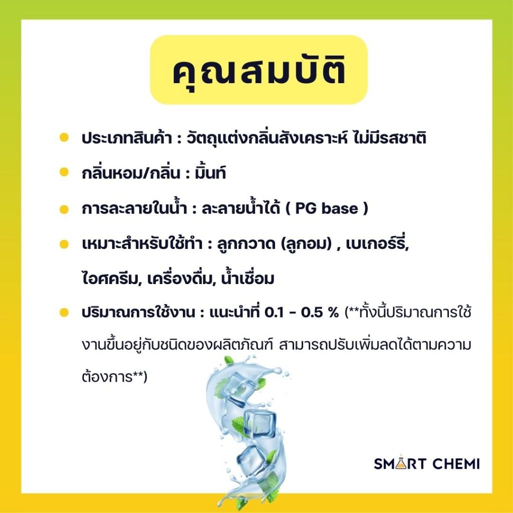 กลิ่นผสมอาหารเข้มข้น กลิ่นมิ้น ( Mint ), ละลายน้ำ ( Water Soluble ) Flavour 30 g, 100 g