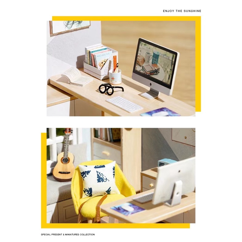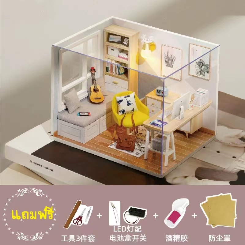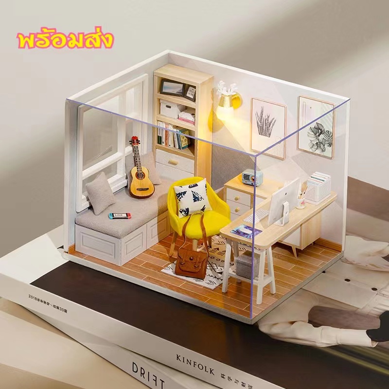 พร้อมส่ง🎈🎈โมเดลบ้านตุ๊กตา DIY แบบต่อด้วยตนเอง [ห้องหนังสือ