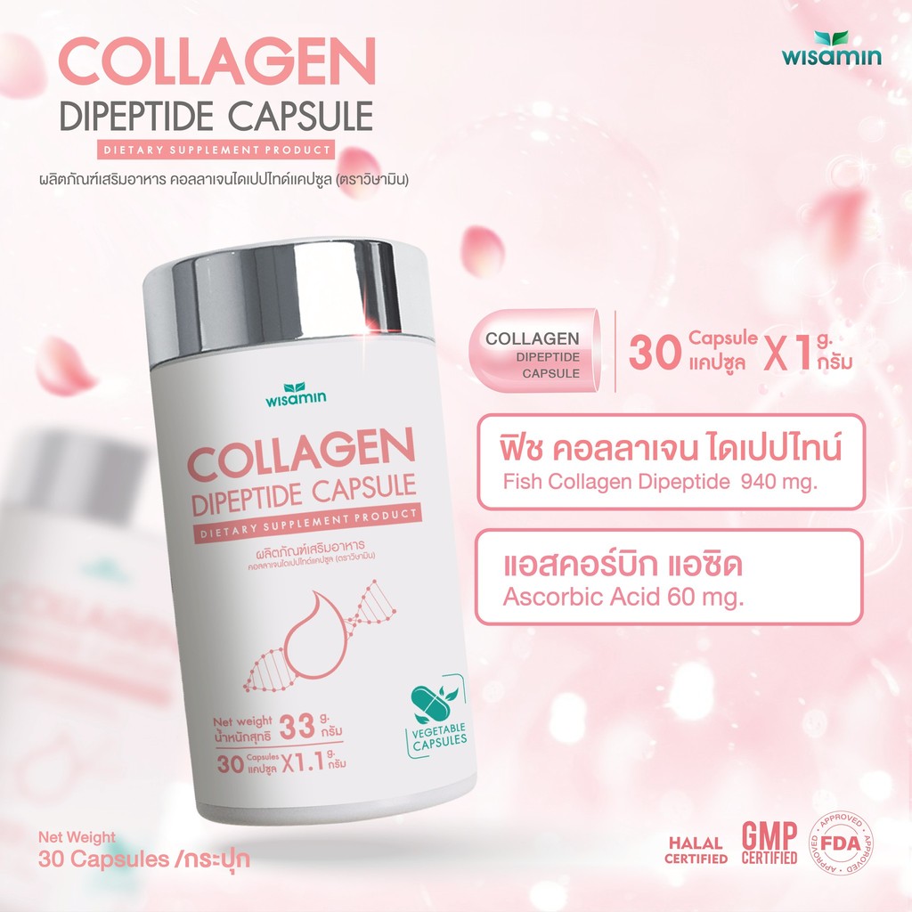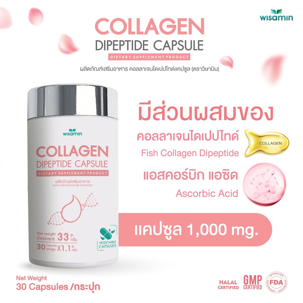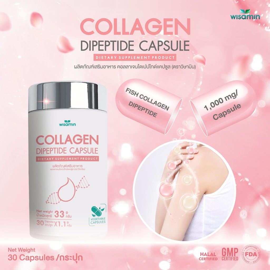 (แพคคู่ 2 กระปุก) COLLAGEN DIPEPTIDE คอ ลลาเจนไดเปปไทด์แคปซูล 1,000 mg (ตราวิษามิน) จำนวน 2 กระปุก รวม 60 แคปซูล